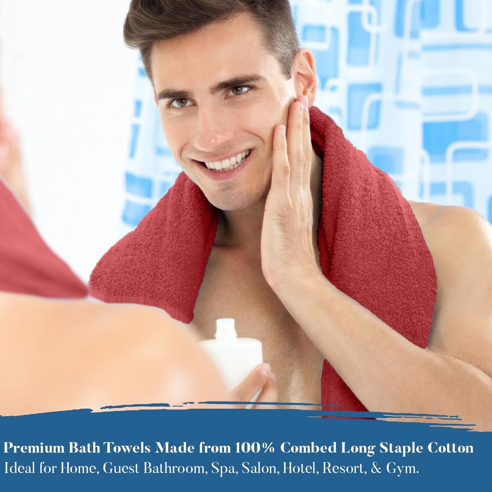 's products, improve your daily bathing experience 100% Spun Cotton Bath Towels, a set of four freely sized (27x54 inches) towels crafted for exceptional softness, absorbency, and durability. Made from premium spun cotton, these towels provide a luxurious feel against your skin, ensuring comfort and longevity for daily use. Whether you're drying off after a soothing bath or wrapping yourself in their warmth post-shower, these towels offer Supreme quality. They also enhance your bathroom decor with timeless elegance, making them a stylish addition to any setting. Easy to care for, these machine-washable towels resist shrinking and color fading, maintaining their vibrant appeal. Elevate your bathroom experience with 's bath towels, a perfect blend of luxury and practicality Soft & Fluffy Comfort – These large bath towels set of 4 offer spa-like softness with 550 GSM fabric—ideal soft towels that feel luxurious, lightweight, and gentle on your skin. Highly Absorbent & Quick Drying – Perfect fast drying bath towel that dry fast and stay fresh—use them as bathing towels at home, gym, or while traveling. Built to Last – Our cotton towels bath stay vibrant and lint-free wash after wash. To prevent discoloration, avoid wiping cosmetics or creams directly on the towel. Safe & Reliable – This 100% cotton towel collection is made from 100% cotton with no artificial materials—safe, absorbent, and perfect for daily use. Generous Size, Great Value – 27x54 inches best towels for shower available in 21 rich colors; ideal for home, spa, sauna or travel use.