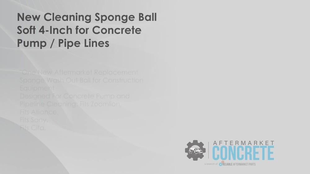 PUTTZMEISTER SCHWING ALLIANCE SANY KCP CONCORD New Cleaning Sponge Ball Soft 4-Inch for Concrete Pump / Pipe Lines Item Description One New Aftermarket Replacement Sponge Wash Out Ball for Construction Equipment Large Quantities Available Designed For Concrete Pump and Pipeline Cleaning: Fits Zoomlion, Fits Alliance, Fits Sany, Fits Cifa, Fits KCP, Fits Putzmeister, Fits Schwing, Fits Concord, and More! Also Used For: Liquid Manure, Water, Oil, and Gas Service Applications Tech Info: 4-Inch Round Soft Replaces Part Numbers: DN125, DN 125, 009005, 9005 Returns Returns Returns Return Policy We provide a 30 day return policy, so if it does not fit, you don't like the way it looks, or if it is unused, we take it back and refund your money. This return policy DOES NOT apply to larger items like seats, for which these items can only be returned if the item was damaged on delivery, or the wrong item was shipped. Seat orders have a limited 15 day return policy. No returns will be accepted on some items without photo evidence of damage. In the event of damage, shortage, or an error on any shipment, please contact us immediately via phone at 888-672-7876. PLEASE SAVE ALL ORIGINAL PACKAGING.! **Refer to eBay Return policy for more details. You are covered by the eBay Money Back Guarantee if you receive an item that is not as described in the listing. Payment Payment Payment PAYMENT METHODS Shipping Shipping Shipping SHIPPING How long does it take to ship out of the warehouse? Orders ship out within 24-48 business hours on average. Normally same day if before 1PM EST. How long does delivery to my address take? Delivery is determined by the type of shipping you go with. Normally, all orders are delivered within 3-7 business days. Many things can play a factor such as Location, Weather, and the items in the order. If you have any questions, please reach out to us before ordering. Call us at 888-672-7876! FAQ FAQ FAQ FAQ How do I know if my order was submitted properly? After completing checkout, you'll be sent a confirmation via e-mail. If you ever have any questions about your order, please call us: 888-672-7876 Can I return an item that is defective, damaged, or I just don't want? We provide a 30 day return policy, so if it does not fit, you don't like the way it looks, or if it is unused, we take it back and refund your money. This return policy DOES NOT apply to glass or seat orders, for which these items can only be returned if the item was damaged on delivery, or the wrong item was shipped. In the event of shipping damage, shortage, or an error on any shipment, please contact us immediately via phone at 888-672-7876. PLEASE SAVE ALL ORIGINAL PACKAGING. Restocking Feee May Apply **Refer to eBay Return policy for more details. You are covered by the eBay Money Back Guarantee if you receive an item that is not as described in the listing. How long does it take to ship out of the warehouse? Orders ship out within 24-48 business hours on average. Normally same day if before 1PM EST. How long does delivery to my address take? Delivery is determined by the type of shipping you go with. Normally, all orders are delivered within 3-7 business days. Many things can play a factor such as Location, Weather, and the items in the order. If you have any questions, please reach out to us before ordering. Call us at 888-672-7876! About US About US About US ABOUT US Aside from providing top-notch products that fit Puttsmeister, Schwing, Alliance, Sany, KCP Concord and Cifa, Aftermarket Concrete Parts prides itself on its unparalleled customer service. The company believes in building long-term relationships with its clients, and as such, it prioritizes customer satisfaction and support. A knowledgeable and friendly customer support team is available to assist clients with their inquiries, technical issues, and product selection. Whether it's a contractor seeking guidance on the compatibility of a replacement part or a construction company in need of urgent assistance, Aftermarket Concrete Parts strives to deliver prompt and effective solutions. Our commitment to customer satisfaction is unparalleled. We strive to deliver an exceptional shopping experience by providing detailed product information, accurate fitment guidance, and prompt assistance from our knowledgeable support team. Save Us As A Seller View Feedback Visit Seller's eBay Shop Sign up to Newsletter Contact Seller About Seller Page This listing is currently undergoing maintenance, we apologize for any inconvenience caused.