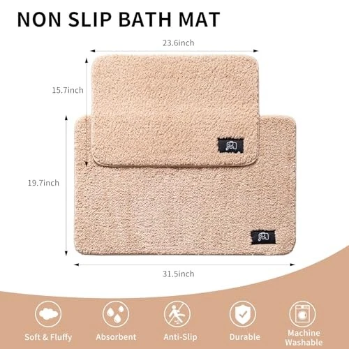 This bath mat is a game-changer! Super soft and plush underfoot—it feels like stepping on a cloud. The absorbency is impressive, and the non-slip backing keeps it securely in place. Love that it’s machine washable, making cleanup a breeze. Perfect for bathrooms, kitchens, or even as a cozy entryway rug. The beige color adds a touch of elegance to any space. Fast delivery and great seller—highly recommend!