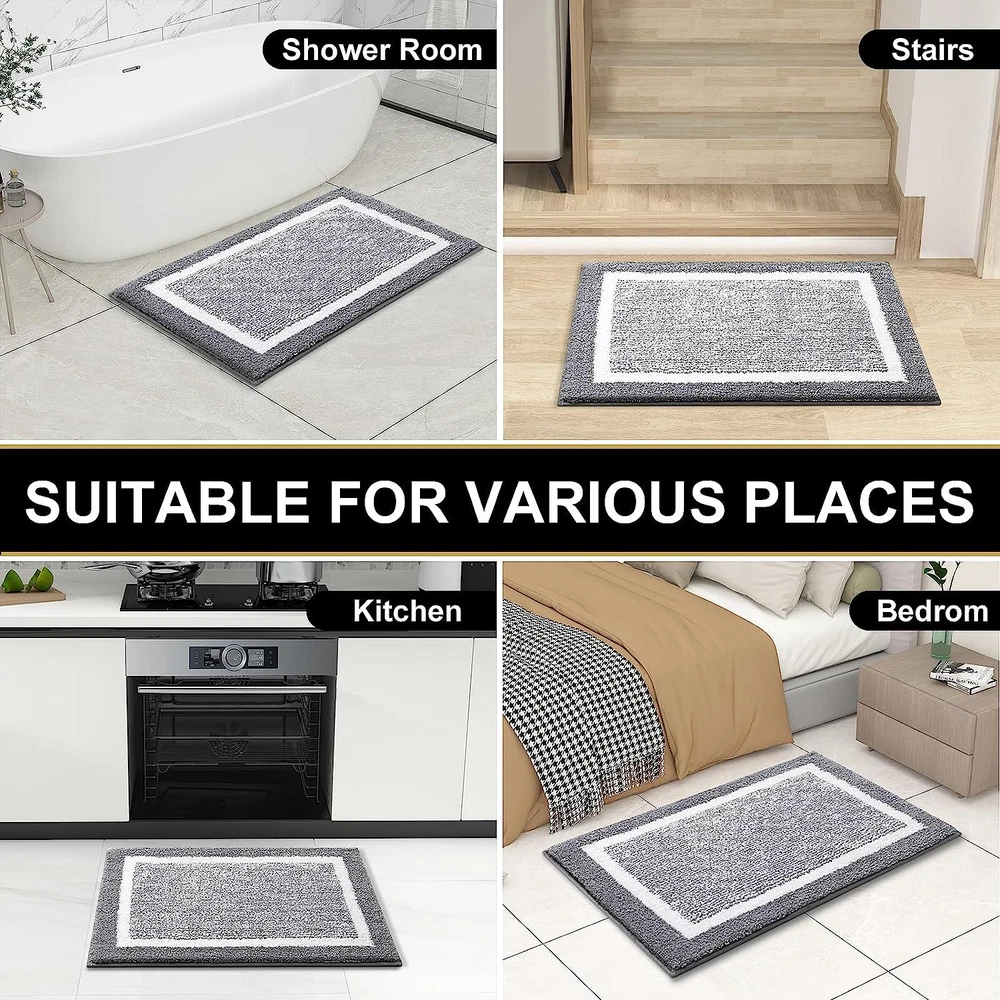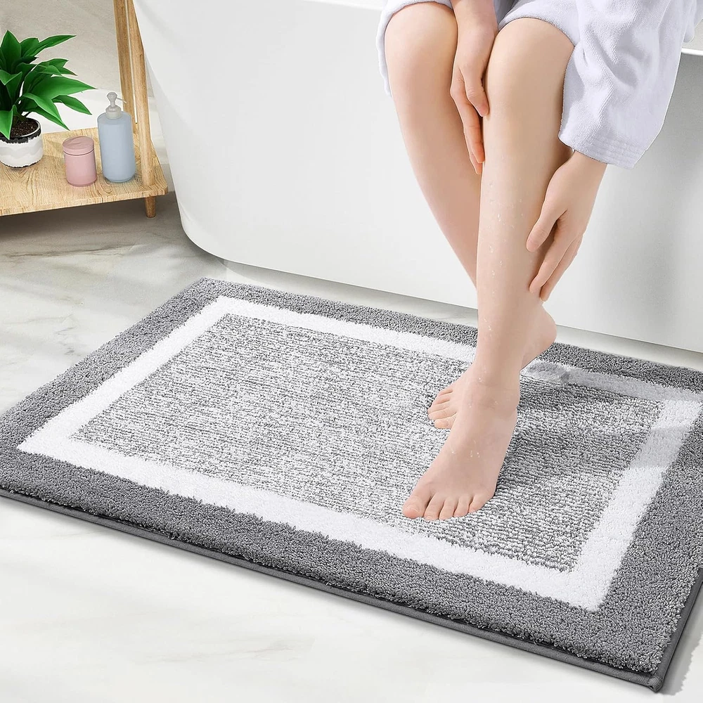 [Heavy Density Microfiber] The bath mats are made up of 0.6-inch height premium soft and fluffy microfiber, where with the help of unique fiber locking technique, the fluff is thicker, making it well-suited for bathroom, vanity, vacation home, master bedroom, kids' bathroom, guest suite [Ultra-Absorbent & Quick Dry] The soft microfiber fabric, will not let the water drip on to the floors, when you are stepping out of your bath, shower or getting ready by the sink. Further, there is moisture trapped inside the mat's deep pile, which allows the rug to dry quickly and cleanly. [Long-lasting and Sturdy] Unlike other brands that use PVC or hot glue, we've built ours with a resilient TP rubber backing. While PVC and hot glue weaken over time, our TP rubber mats are designed to withstand repeated washing and drying. WARNING: Water under the bathroom rug can cause it to slip. Keep bottom of the bath rug dry! [Easy Maintenance] OLANLY bathroom mats can be machine washed separately with cold water, mild detergent which has no chlorine or bleach and tumble dry on low speed or hang dry. Also, the color will not fade and will stay vibrant for many years even with after washing and drying many times. [Beautiful Décor & Multipurpose] The bath rugs have unique geometric design, to provide beautiful décor to nearly any space in your bathroom. The mats work perfectly in front of your single or double sink, shower, bathtub or anywhere you want to have support and warmth to your feet. Product Description OLANLY LUXURY BATHROOM DECOR SERIES ! Add to Cart Add to Cart Add to Cart Add to Cart Add to Cart Add to Cart Add to Cart Customer Reviews 4.0 out of 5 stars 150 4.4 out of 5 stars 35 4.4 out of 5 stars 180 4.4 out of 5 stars 808 4.3 out of 5 stars 4,134 4.4 out of 5 stars 164 4.5 out of 5 stars 554 Price $31.89 $ 31 . 89 $21.99 $ 21 . 99 $15.89 $ 15 . 89 $17.98 $ 17 . 98 $21.89 $ 21 . 89 $25.49 $ 25 . 49 $30.88 $ 30 . 88 Material Microfiber Stainless Steel Chenille Microfiber Microfiber Chenille Microfiber Size 30"x20"+24"x16"+24"x20" 5 Pack 17.5"x15" 17.5"x15" 24"x20"+24"x16" 30"x20"+24"x16"+24"x20" 30"x20"+24"x16"+24"x20" Backing Technology ✔ ✔ ✔ ✔ ✔ ✔ ✔ Ultra Absorbent ✔ ✔ ✔ ✔ ✔ ✔ ✔ Multiple Colors and Sizes ✔ ✘ ✔ ✔ ✔ ✔ ✔ Thick, Soft Pile Helps to Soothe Tired Feet and Provides Superior Comfort Stylish design, place these rugs in front of the sink and near the tub/shower, it feels great to stand on these soft and comfortable cushions,enjoy a soft mat for a spa-like feel. The dense microfiber can absorb as much water as possible from your wet feet. Extra sturdy TPR backing, withstands multiple times of machine wash. The video showcases the product in use. The video guides you through product setup. The video compares multiple products. The video shows the product being unpacked. video Merchant Video