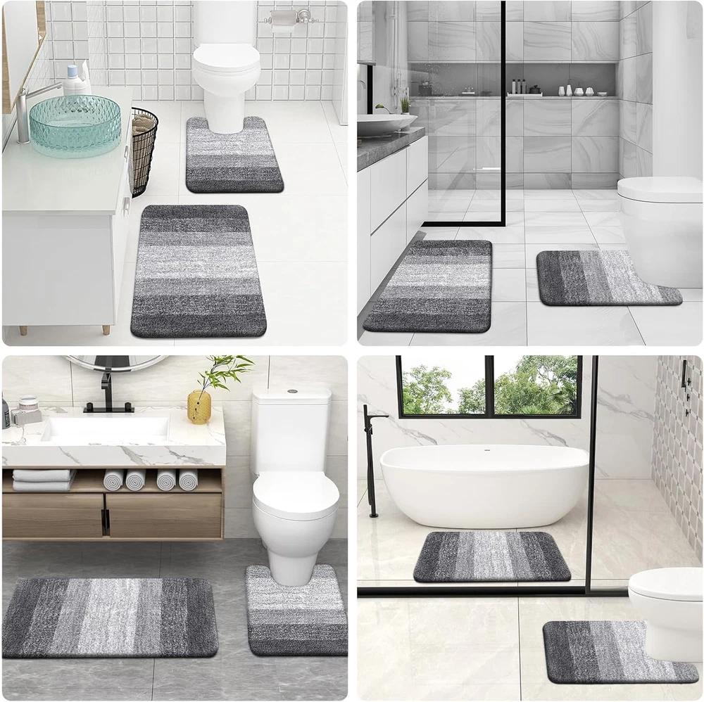 Non Slip 3-Piece Chenille Bath Mat Set with PVC Backing Washable Bathroom Rugs
