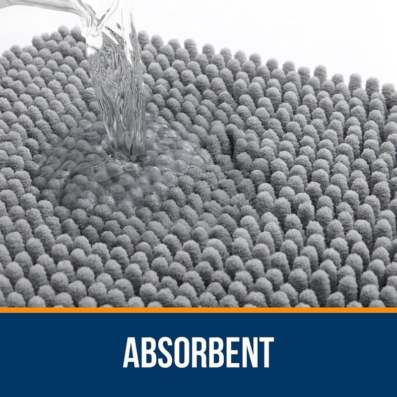 Soft Absorbent Chenille Bath Mat 36x24 Quick Dry Machine Washable Non-Slip Rubber Backing