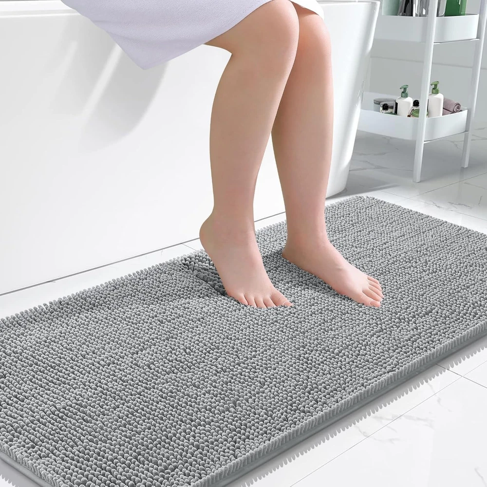 $ 9.5Thick Machine Washable Chenille Bath Mat 15x23 Grey for Bathroom
