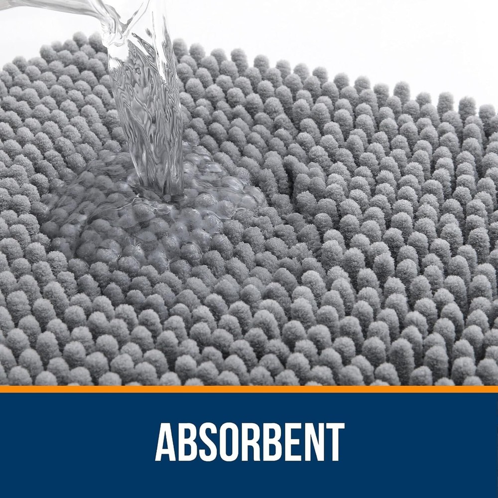 This bath rug is incredibly soft and plush—perfect for stepping out of the shower or bath! The thick chenille absorbs water quickly, and the rubber backing keeps it from sliding. It’s machine-washable, so cleaning is a breeze. Love the cozy feel underfoot, and the gray color fits any bathroom style. A must-have for comfort and functionality!
