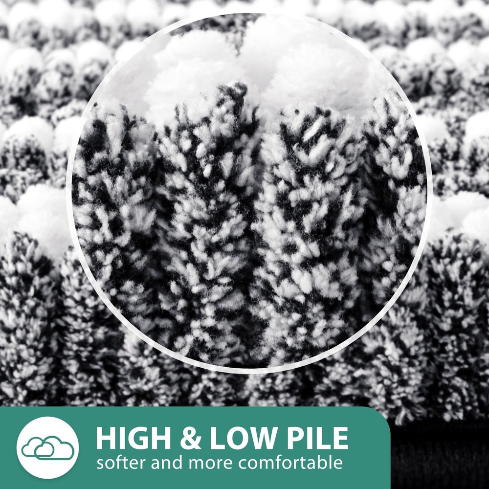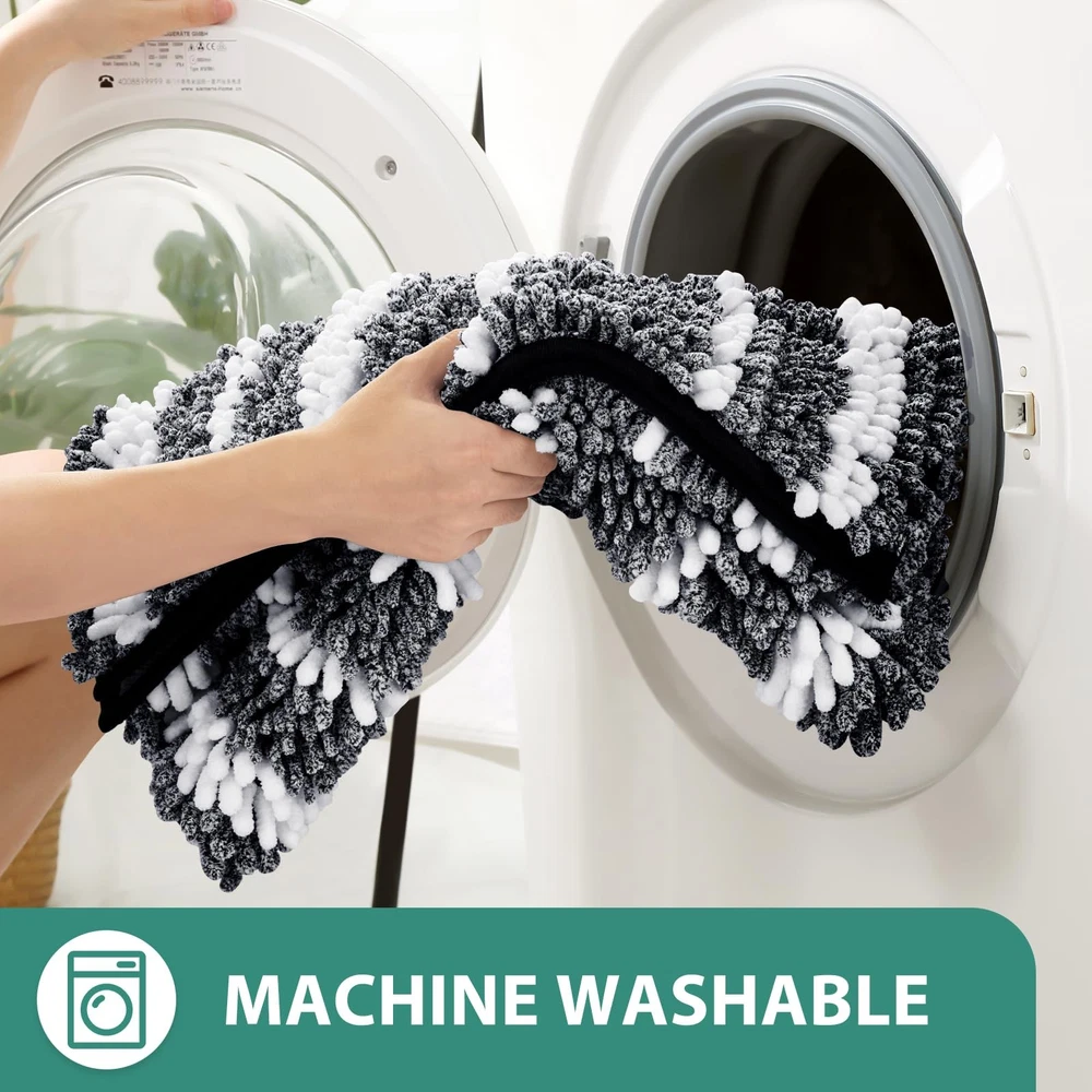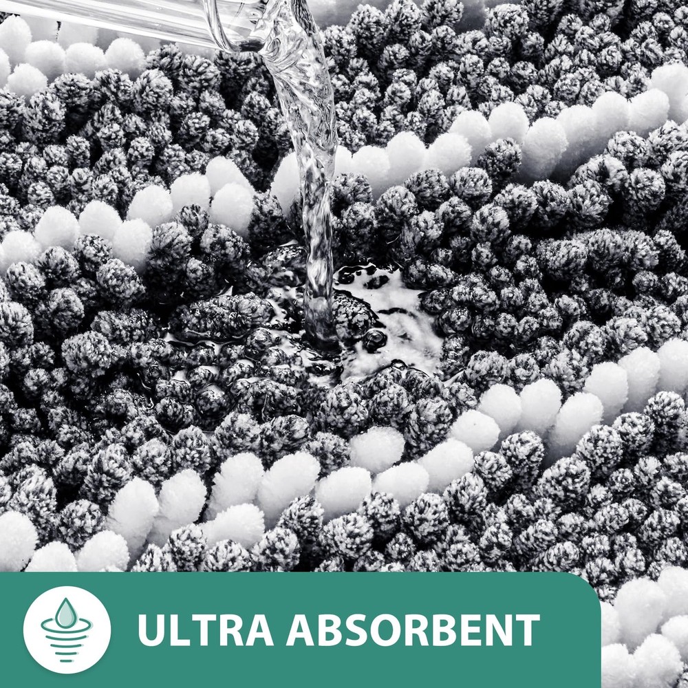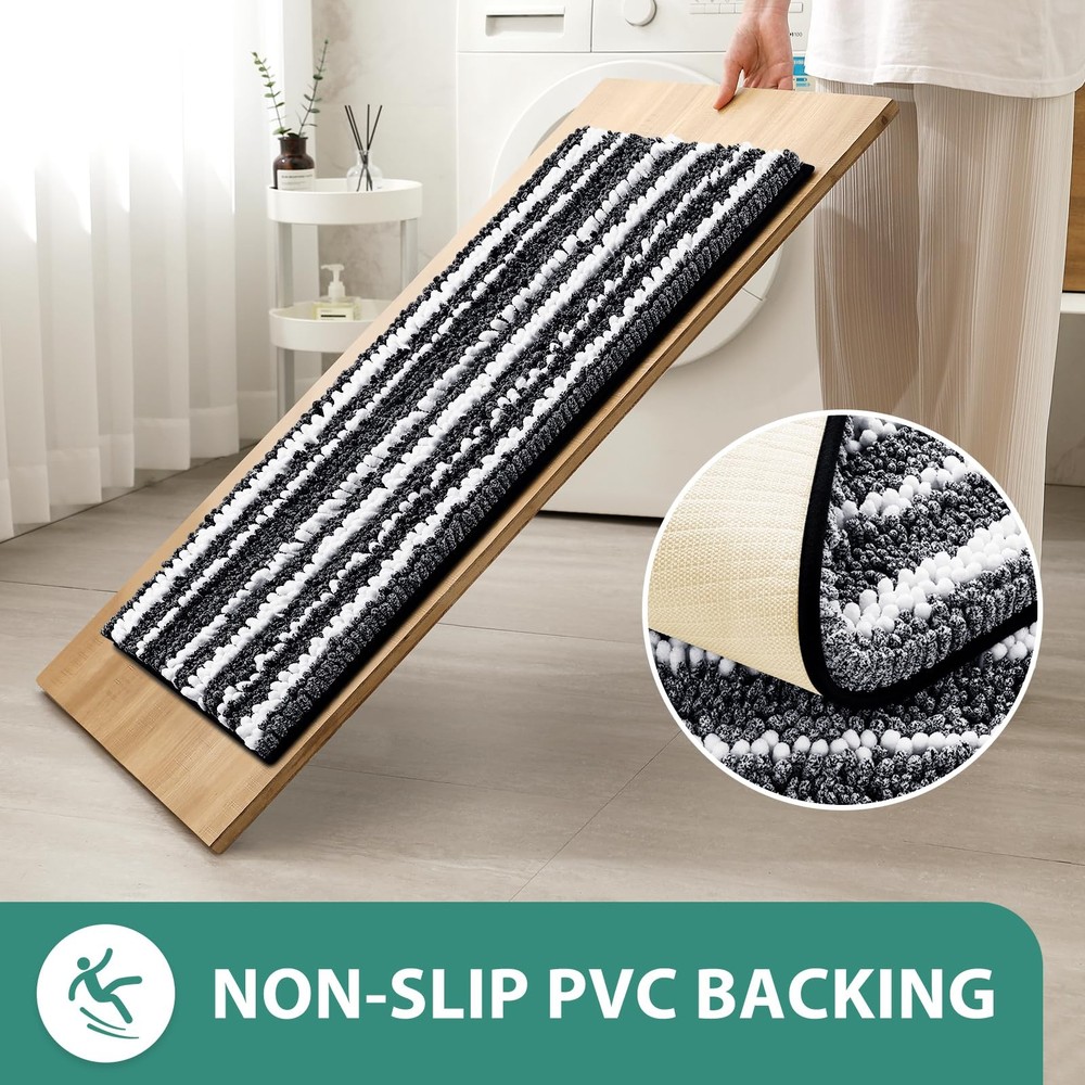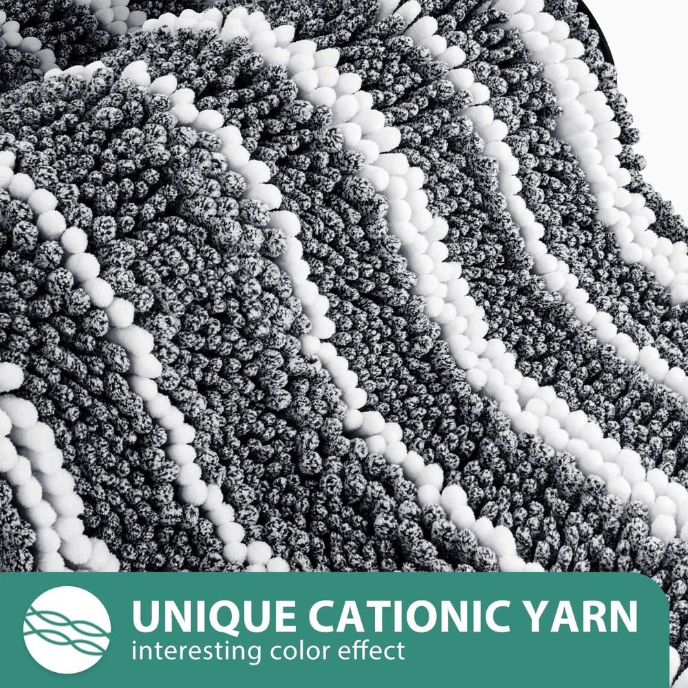 Cationic Dyed Bathroom Rugs Set includes 2 pieces of chenille mats that are extra soft, highly absorbent, and feature a non-slip backing. These stylish rugs are machine washable, making them easy to clean and perfect for keeping your bathroom floor dry and comfortable. Ideal for use around the bath and toilet. Cationic Craft: This creates a striking dual-color effect with blended white stripes, seamlessly coordinating with various decor styles in your bathroom, kitchen, or bedroom. This feature enhances the visual appeal, delivering a perfect and stylish look Soft and Comfortable: Indulge in unparalleled comfort with our plush bathroom rug. Made from high-pile chenille, it envelops your feet in soothing softness, providing a heavenly experience after every bath. No more stepping onto hard, cold floors -our bath rugs pamper you with cozy feel. High Water Absorbency: These upgraded luxurious shag rugs are made of plenty of shaggy microfibers, each fiber about 1" high and dense. Can quickly soak up the water and keep your floor dry like a giant sponge. Non-slip PVC Backing: Ensures the rug stays in place, providing a firm grip on bathroom floors. Machine Washable: Wash on a gentle cycle with cold water and mild detergent. Avoid bleach and dry cleaning. Hang or lay flat to air dry. This keeps your bath rugs in great condition and ensures your space stays tidy and clean.