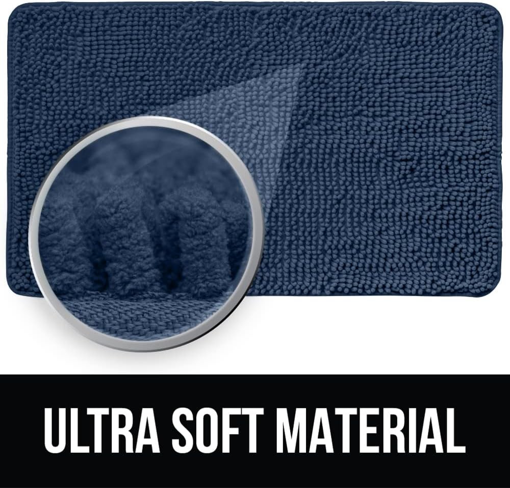 KANGAROO Bathroom Rugs, Chenille Soft Absorbent 1'5" x 2' (Rectangular), Navy Product Details Brand: KANGAROO Size: 1'5" x 2' (Rectangular) Material: Chenille Weave Type: Machine Made Item Weight: 0.5 Kilograms Pile Height: High Pile Construction Type: Machine Made Back Material Type: Thermoplastic Rubber (TPR) Color: Navy Indoor/Outdoor Usage: Indoor Theme: Occasion, Welcome, Season, Fun Is Stain Resistant: Yes Product Care Instructions: Machine Wash Pattern: Solid Shape: Rectangular Special Feature: Absorbent, Fluffy, Fade Resistant, Quick Dry, Washable Room Type: Bathroom, Conference Room, Classroom, Study Room, Dining Room Product Dimensions: 24"L x 17"W Rug Form Type: Bath Mat Style: 17" x 24" Occasion: Wedding, Graduation, Baby Shower, Housewarming, Halloween Number of Pieces: 1 Water Resistance Level: Not Water Resistant Seasons: All, Winter, Summer, Fall, Spring Model Name: KANGAROO Bath Rug Mat Age Range (Description): Teen Recommended Uses For Product: Bath Rug, Bath Mat, Bath Room Floor Rug, Bathroom Rug UPC: 811113035939 Item Weight: 1.1 pounds Manufacturer: Hills Point Industries, LLC Country of Origin: China Is Discontinued By Manufacturer: No LUXURIOUS CHENILLE: luxurious, soft pile helps soothe tired feet and shields toes from the cold floor; the density and plushness of our pile surpasses that of most other brands ULTRA ABSORBENT: thick, high pile helps to absorb moisture as you step out of your tub or shower, helping to prevent excess water from accumulating on your floors; the lush microfiber material helps to capture moisture deep within the rugs fabric fingers allowing the rug to dry quickly PERFECT SIZE: measuring 17 by 24 inches, bath rug is perfect in any kids or master bath room; in front of the bathroom sink, shower, and more MACHINE WASH AND DRY: designed and tested to be machine washed and dried many times; the ultra strong underside features durable TPR material (not PVC or glue) so you can wash and dry time after time; our rugs have also been given the Confidence in Textiles label, and have been tested for harmful substances according to OEKO-TEX Standard 100; performance, durability and emissions tested PERFECT FOR THE WHOLE FAMILY: many modern, family friendly colors to complement your bathroom décor