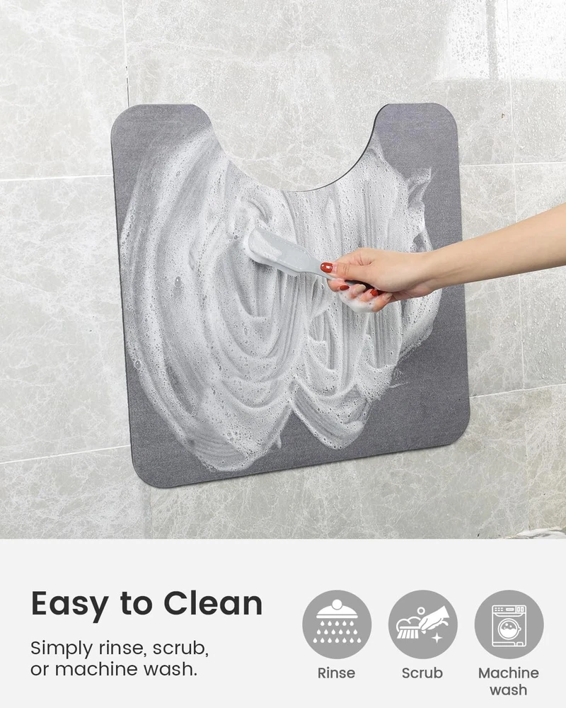 Love how soft and cozy this U-shaped rug feels underfoot—perfect for chilly mornings! The absorbent layers dry fast and keep the floor dry, while the rubber base stays firmly in place. It’s stylish, comfy, and does its job well without slipping around. A great upgrade for any bathroom!