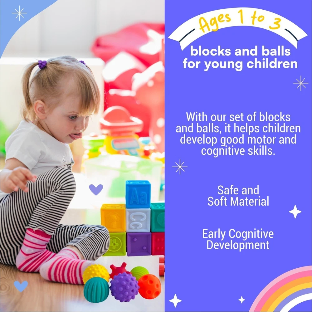 The Baby Soft Blocks set includes 14 pieces designed for toddlers aged 1 to 3 years old. Made by Kids Melody, these soft toys aid in teething and sensory development, promoting motor skills and cognitive growth. The blocks feature a colorful design with an alphabet and animal theme, engaging children in interactive play. This educational toy is suitable for both boys and girls, encouraging learning and exploration in a fun and stimulating way.