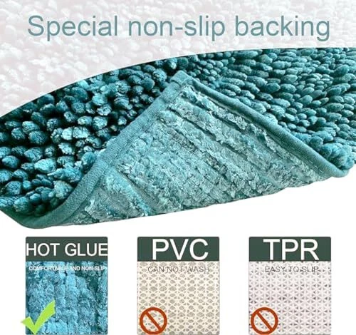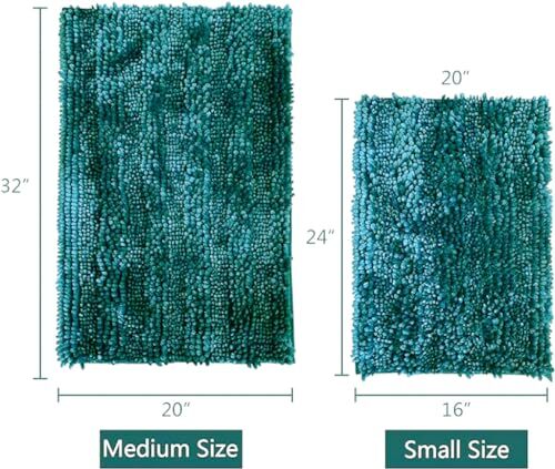 These bathroom rugs are amazing! Super soft, ultra-absorbent, and the dark teal color looks luxurious in my bathroom. The non-slip backing keeps them secure, and the velvet chenille feels cozy underfoot. The two sizes are perfect for different areas—love them! Quick shipping too. Highly recommend!