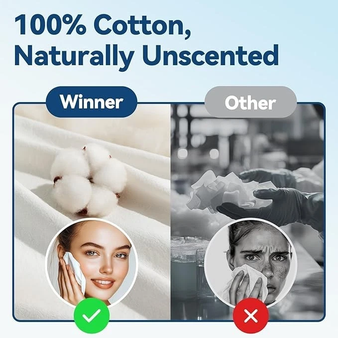 The Winner Soft Face Towels are 100% USDA Biobased Remover Dry Wipes, made of soft cotton material. These face cloths are designed for sensitive skin, making them suitable for all skin types. With a total of 600 wipes in the 6 pack, these towels are perfect for daily use in the bathroom. The biodegradable and chemical-free feature ensures a safe and gentle cleansing experience, making them a great addition to any home skincare routine. Made in the United States, these soft face towels offer a fragrance-free and environmentally friendly option for maintaining good hygiene.