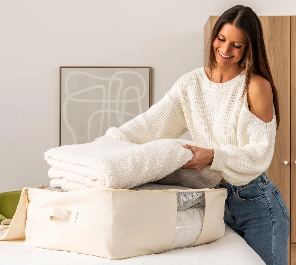 Soft Canvas Storage Bags with Zipper. Thick Breathable, 2pc King/Queen Comfor...