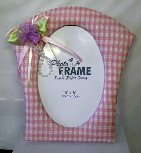 Soft Cloth Picture Photo Frame Pink Gingham Design Flower in corner holds 4 x 6 inch photo CLEARANCE - Nonrefundable