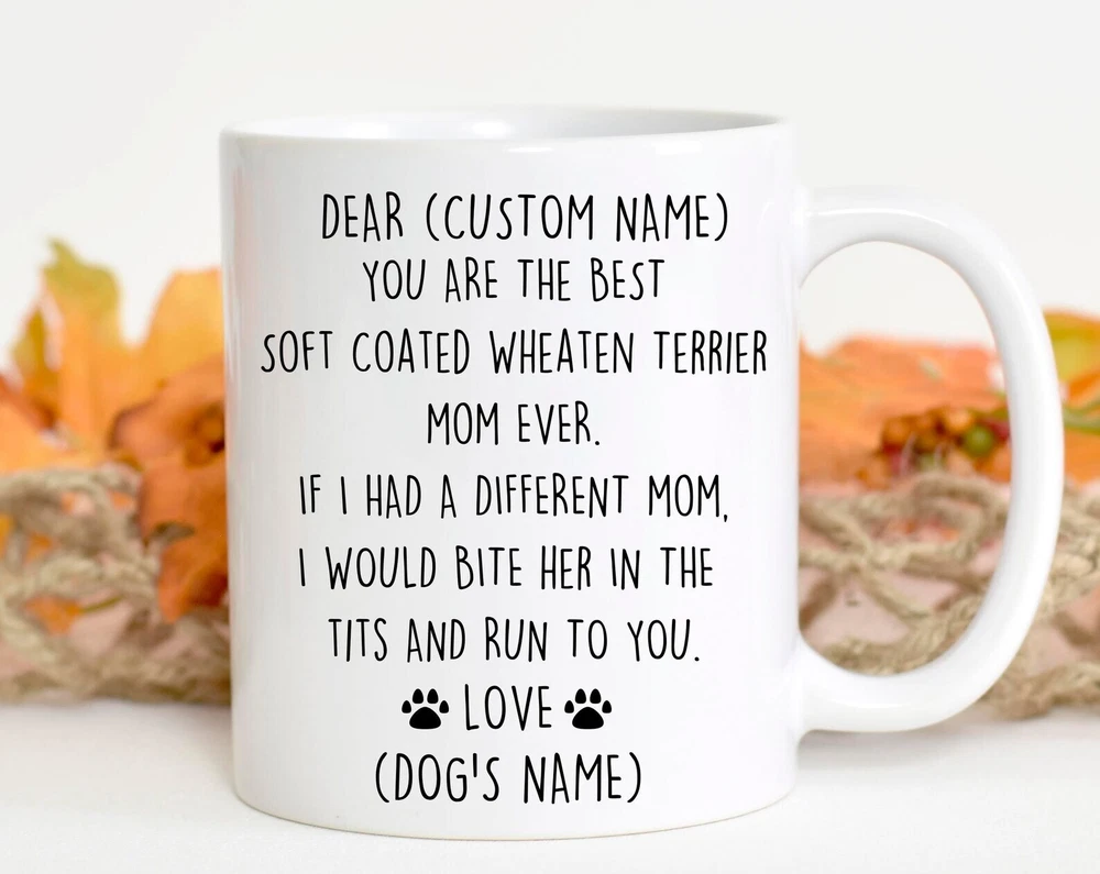 Soft Coated Wheaten Terrier Mom Birthday Gift Soft Wheaten Mom Christmas Gift Wheaten Mom Valentine Gift Funny Wheaten Mom Appreciation Product Details.. This high quality 11oz. ceramic white mug has a premium hard coat that provides crisp and vibrant color reproduction sure to last for years. Perfect for all hot & cold beverages. The highest quality printing possible is used. It will never fade no matter how many times you wash it. Material: 100% Ceramic. Print both sides. Dishwasher and Microwave Safe. High Gloss + Premium White Finish. Printed in the U.S.A. Personalized & Custom. We support personalized and custom mug to add custom, when placing an order, you can add notes to the "order note" in shipping address section. Also you can contact us directly via message. Shipping Info. Ready to ship in 1 to 2 business days, All products are made-to-order and proudly printed in the United States. Shipped by USPS and DHL, You will receive your order in 5-7 days. Replace & Refund. All products are defective during shipping broken, chipped will be replaced free of charge. You are not satisfied with the product, we will refund 100% money to you. If any other issues arise, please do not hesitate to message, we would be more than happy to assist you.
