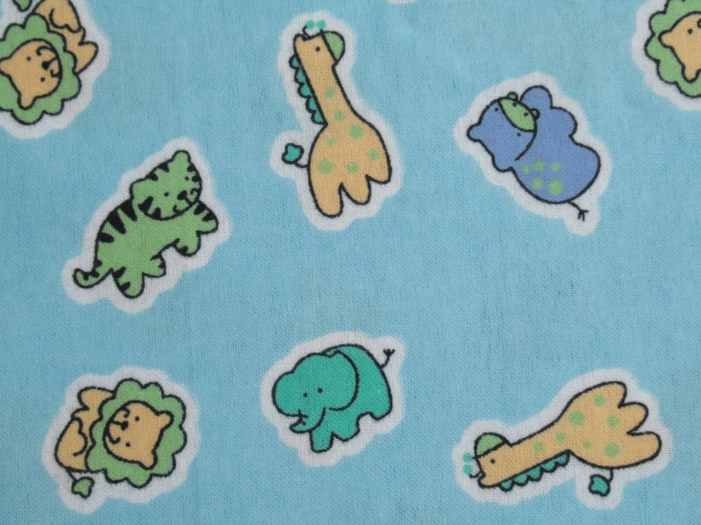 Baby Zoo Elephant Giraffe Hippo Lion Tiger Vintage Multicolor on Baby Blue Cotton Fabric (It's so soft that it feels like flannel!) 26" X 44" W There's 26" (plus 2YD listed separately) of continuous fabric. Buy all 2YD plus...save some shipping!) NEW (I WILL COMBINE ORDERS AND "REFUND" THE DIFFERENCE IN SHIPPING!)