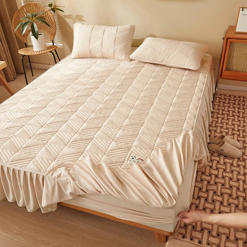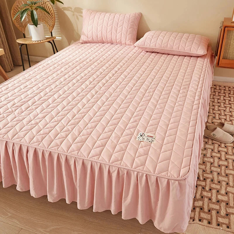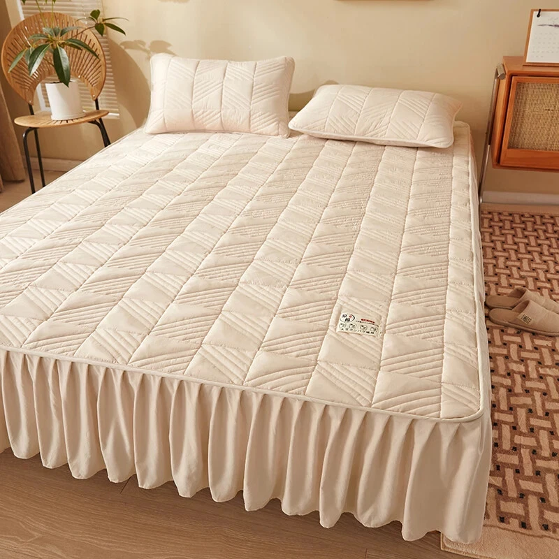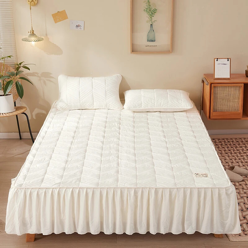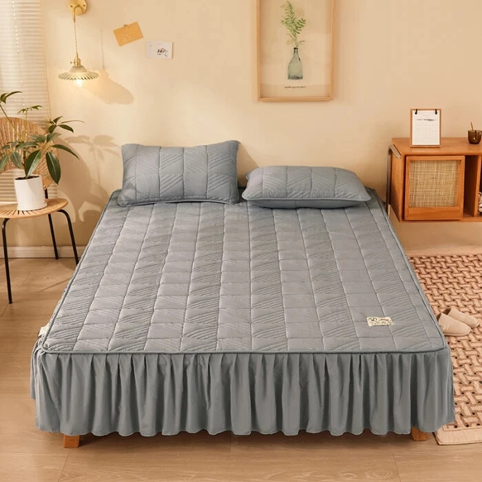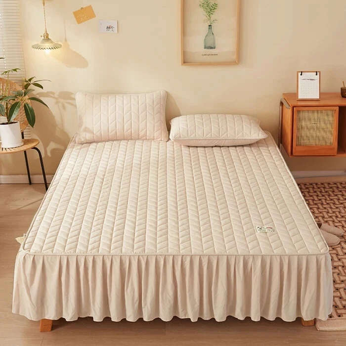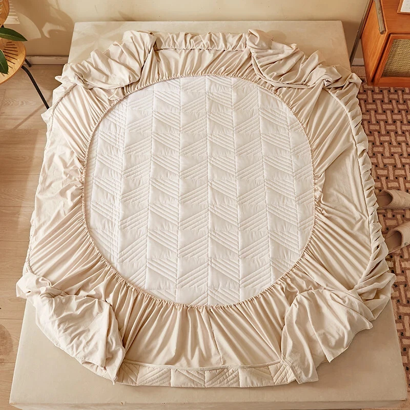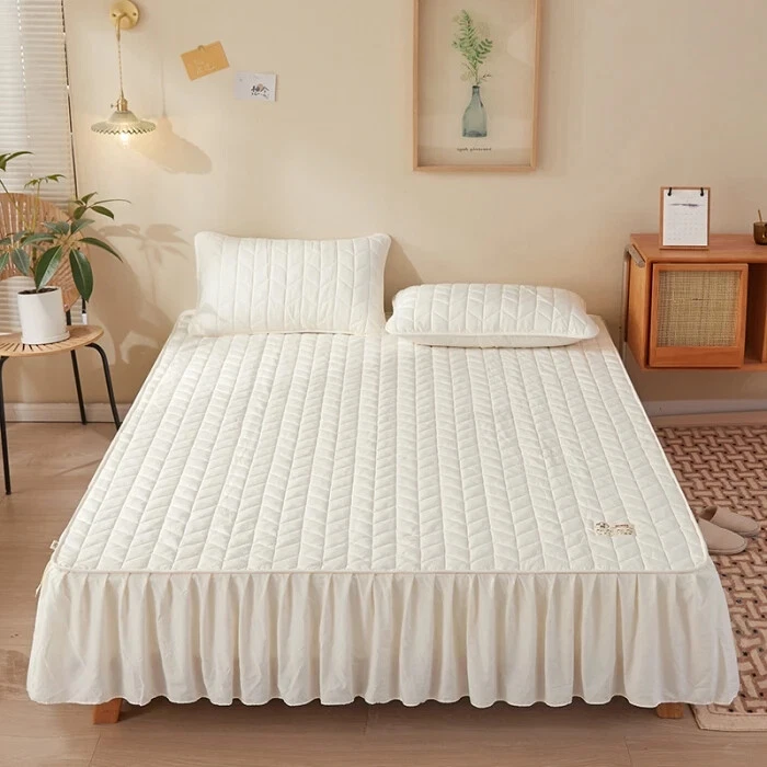 Soft Cotton Elastic Fitted Mattress Cover with Skirt Protector