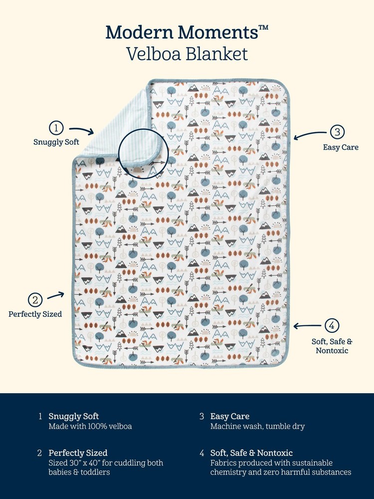 The modern moments collection blends modern style and boutique sophistication at a great value without compromising on quality. Modern moments is a lifestyle brand that embodies a feeling of effortless style for any occasion. Includes 2 ply printed baby blanket Made with soft, warm fabric that's gentle on sensitive skin and easy to care for. Perfect for babies & toddlers! Sized 30" x 40" & features soft 2 ply fabric. Designed for cuddling & keeping warm both indoors & out. WARNING: To prevent possible suffocation: DO NOT leave infants under the age of 12 months unattended with product. Always keep soft objects, such as loose bedding, blankets and toys out of infant’s sleep area. side pink with allover white vine print, side ivory with allover pink rose floral print