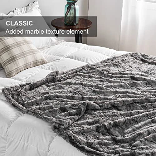 This blanket is amazingly soft and so cozy—perfect for snuggling on the couch or bed. The faux fur is plush on both sides, and the marbled gray color looks elegant. It’s thick, warm, and great for gifting. Fast shipping too! Highly recommend!