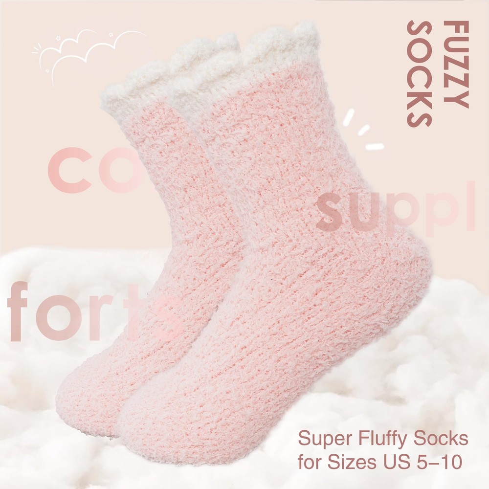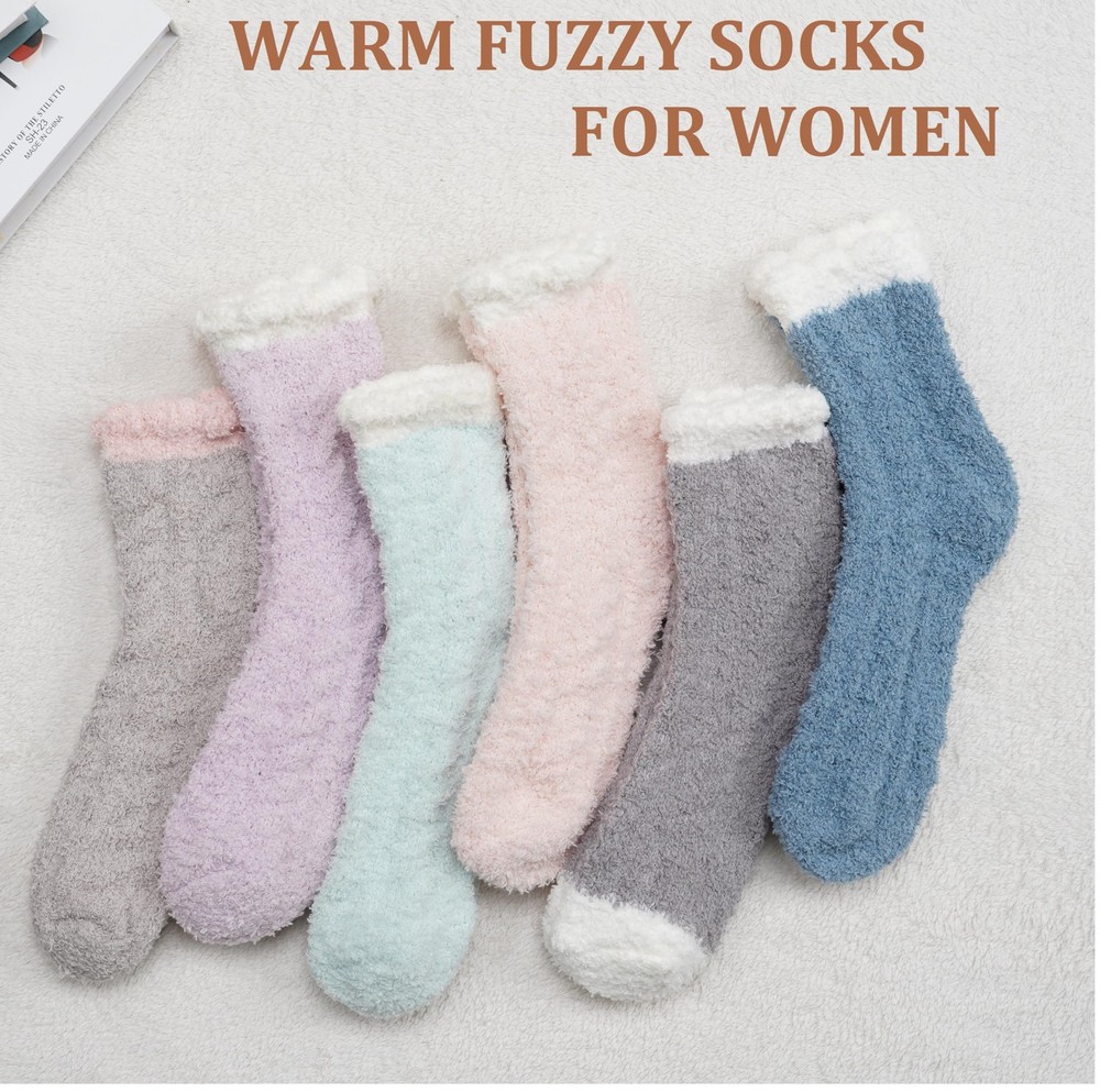 Soft Fuzzy Socks for Women - Made from warm and high quality plush material , these comfy cozy socks offer a soft touch to keep your feet warm and comfortable. Free Size Slipper Socks - These high-elastic womens fluffy socks fit US sizes 5-10 and come in various colors, making them perfect for most women and girls. Warm Sleeping Socks - The ideal thickness makes these comfy fluffy socks great for sleeping, keeping your feet warm for a cozy night’s rest. Winter Women Socks - This pack includes 6 solid color slipper socks (pink, green, purple, brown, gray, blue), perfect for daily wear at home or out.Their extreme softness will make you never want to take them off, warm house socks choice. Fantastic Gift - This stylish and cozy pair of winter socks makes a thoughtful, cozy gift for your wife, daughter, girlfriend, friend, or colleague, perfect for occasions like Thanksgiving, Christmas, birthdays, Valentine's Day, and Mother's Day.