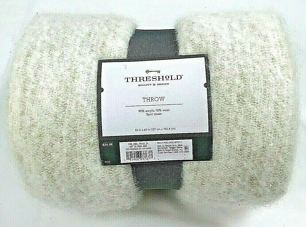 Up for purchase: Threshold 10% Wool - 90% Acrylic Verigated Tan & Cream Throw Blanket. My home is SMOKE FREE . I do not know where the items have been before I purchased them. I clean and test all toys to make sure they work satisfactorily. I describe items to the best of my ability but I am not an expert and condition is a matter of opinion. (Please see my condition rating chart below.) Any issues/flaws will be noted in the condition description. Thank you for your visiting my store. I appreciate and value your business. Condition ratings: Fair - shows use and will more than likely be flawed. I will rarely list anything in this condition unless it is an extremely hard to find item. Good - shows wear Very Good Condition - used and may show some wear, but usually very little. Excellent - used but appears to have not been used. New - new from a retail store. I strive to sell only the items are in very good condition or better. I clean and go over each item carefully before I ship it . I do hope you enjoy your purchase and I look forward to dealing with you again in the future. Import duties, taxes and charges are not included in the item price or shipping charges. These charges are the buyer's responsibility. Please check with your country's customs office to determine what these additional costs will be prior to bidding/buying. These charges are normally collected by the delivering freight (shipping) company or when you pick the item up – do not confuse them for additional shipping charges. I do not mark merchandise values below winning bid amount or mark items as "gifts" - US and International government regulations prohibit this practice.