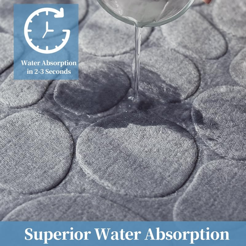 【NON-SLIP】:The back of the bath mat is made of non-slip mesh, and the non-slip backing helps to prevent displacement and slippage, so that you or your family won't slip and slide on wet surface scratching after getting wet.The PVC rubber prevents water from seeping into the soft surface, perfect for hardwood floors or floor ties, waterproof and hassle-free 【Machine Washable】 :Our bath mats are easy to clean, machine wash with a mild detergent (no chlorine or bleach), tumble dry or hang dry at a low temperature, or simply pick up and shake the rug to freshen it up to keep the lines dry. Colours will not fade no matter how many times you wash it 【SUPER ABSORBENT PERFORMANCE】:The bath mat is treated with special technology, this special material is hygroscopic and properly insulated for fast absorption and drying, maximising the absorption of water from shower feet. And the water will not stay on the surface of the bath mat. The mat protects your feet from cold floors and allows your feet to feel the ultimate luxury enjoyment 【Multi-purpose】:Bath mats come in a variety of sizes and colours, essential for any style of space, it can be used in bathroom, kitchen, bedroom, living room, doorway, staircase, balcony, laundry room, pet house, pet rugs and so on. Please measure the size before buying these bath mats and buy according to the suitable size. GUARANTEE: If you are not satisfied with your product, please contact us