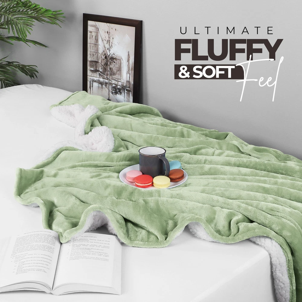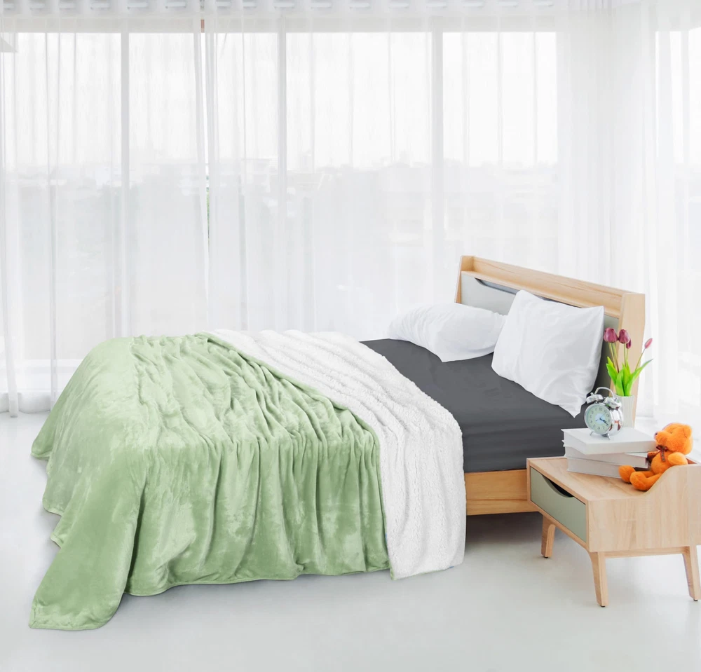 Sherpa Fleece Blanket - Elegant Sherpa fleece blanket with a luxurious flannel front and a plush Sherpa backing. Available in attractive colors to match your home and room decor. Durable Design - Double sided design, reinforced with a 2-inch hem and double-needle stitching, provides durability for prolonged use. Cozy Warmth - This reversible blanket for bed maintains the perfect balance of weight and warmth. Snuggle into it on a movie night or carry it to thrilling adventures, fun filled picnics and camps, our soft fleece blanket will keep you comfy everywhere. Versatile Use - Use it on a bed or while sitting on a couch, chair, or sofa as your warm blanket. Our soft blankets will add a touch of glamor to your bedroom, guest room, and overall home decor. Easy Maintenance - It is recommended to machine wash with cold water and tumble dry on low heat.