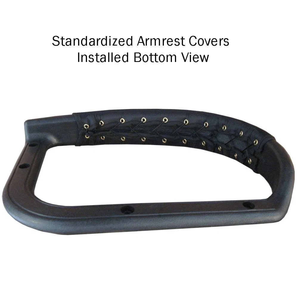 Transform your existing chair armrests with a pair of soft neoprene armrest covers. This product adds cushioning, covers damaged armrests, protects armrests, and has a professional built-in look. These armrest covers are used for office chairs, wheelchairs, mobility scooters, lawn chairs, patio furniture, guest chairs, etc. Standardized to fit most loop, rail, and hook style chair armrests. The durable soft black neoprene stretches to fit around armrests of many shapes and sizes. The outer surface is bonded with a layer of soft and durable black nylon. This soft breathable surface material is not sticky like vinyl or leather, and yet it can be hand washed. This product covers an armrest area up to 16" Long and up to 4" Wide, please see the product pictures for more detail. These covers can also be folded, with the grommets aligned, to cover shorter armrests down to 8" Long, or to create the effect of double neoprene cushioning. The universal tether attachment system is with most chairs. The brass grommets lace up underneath your armrests like a shoe. Extra long sets of 100" laces are , do not allow children to play with cords or laces, any excess cord or lace should be trimmed. Optional 5/8" thick high resiliency foam inserts are . The foam inserts fit under the armrest covers for maximum cushioning. Pricing is per complete pair of chair armrest covers (right and left). Specify a quantity of 1 for 1 set.. 2 for 2 sets.. etc. Made in the USA. Neoprene Chair Armrest Covers: Excellent cushioning, cover damaged armrests, protect armrests, professional built-in look. The soft neoprene stretches for a perfect fit plus 5/8 inch thick high resiliency foam inserts for maximum armrest cushioning. Standardized to fit railing and loop style armrests. Offered only in pairs, not singles. Covers armrest surface area up to 16 inches long and up to 4 inches wide. Made in the USA. Attaches to armrests via grommets and cord, laces up underneath armrests like a shoe. Laces are . Simple installation.