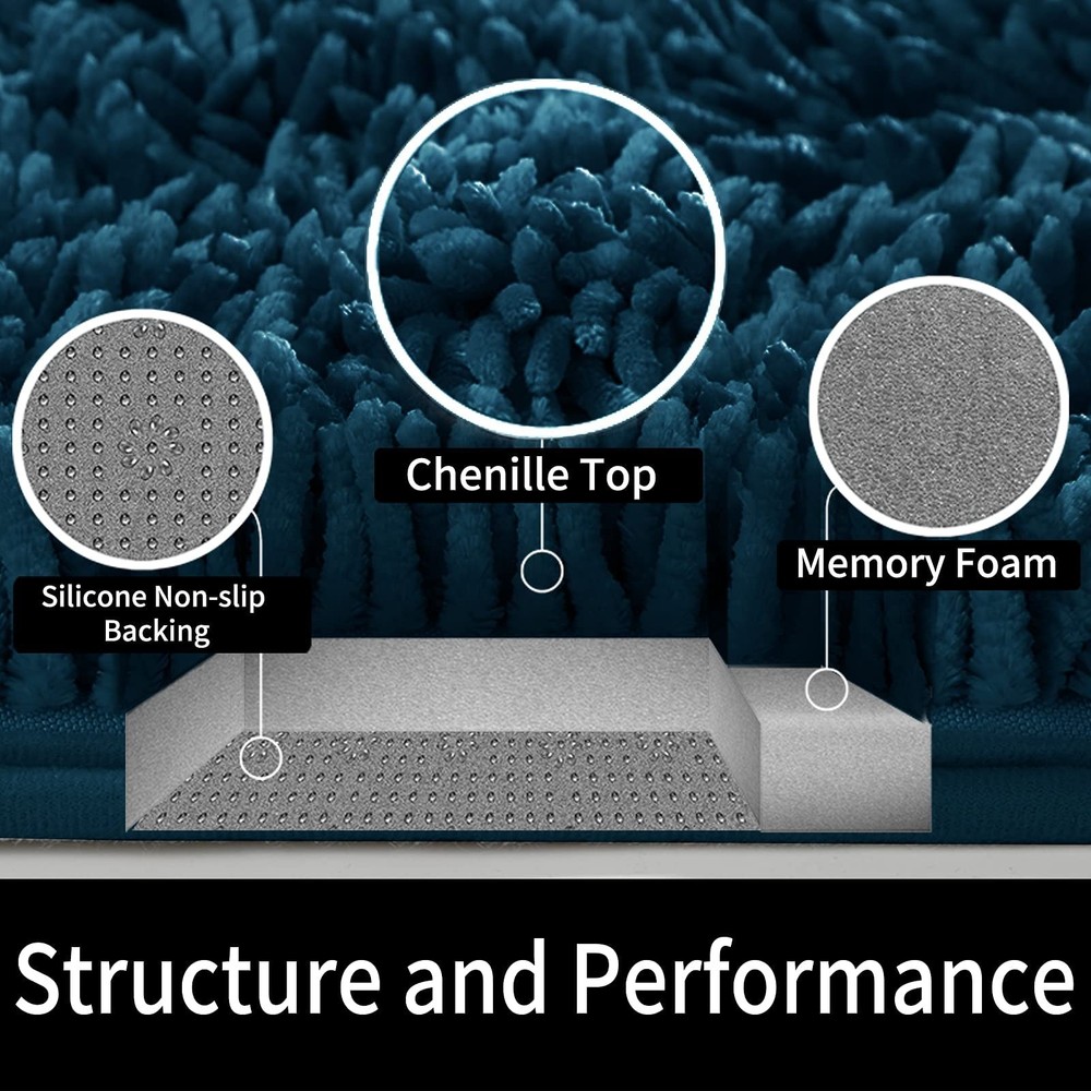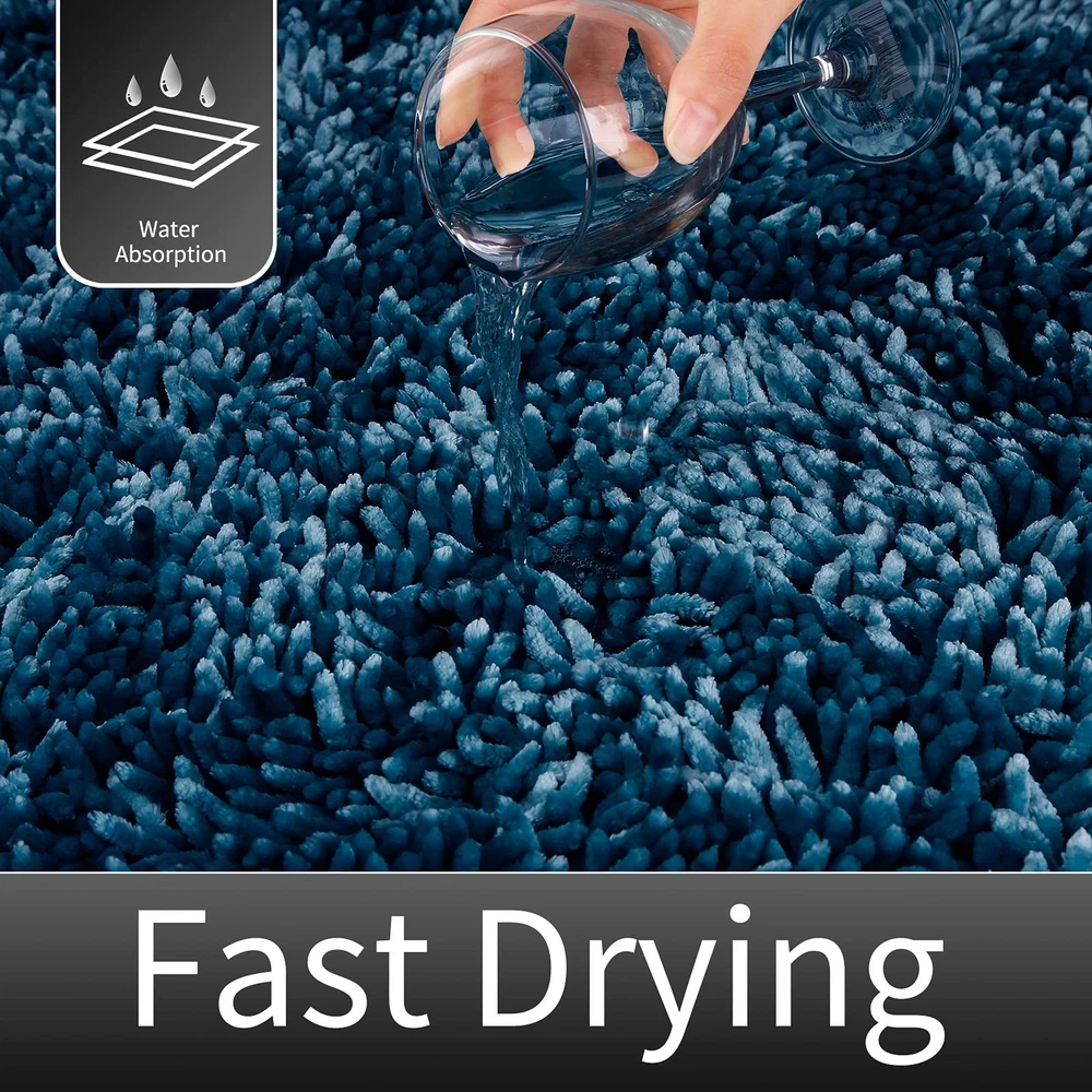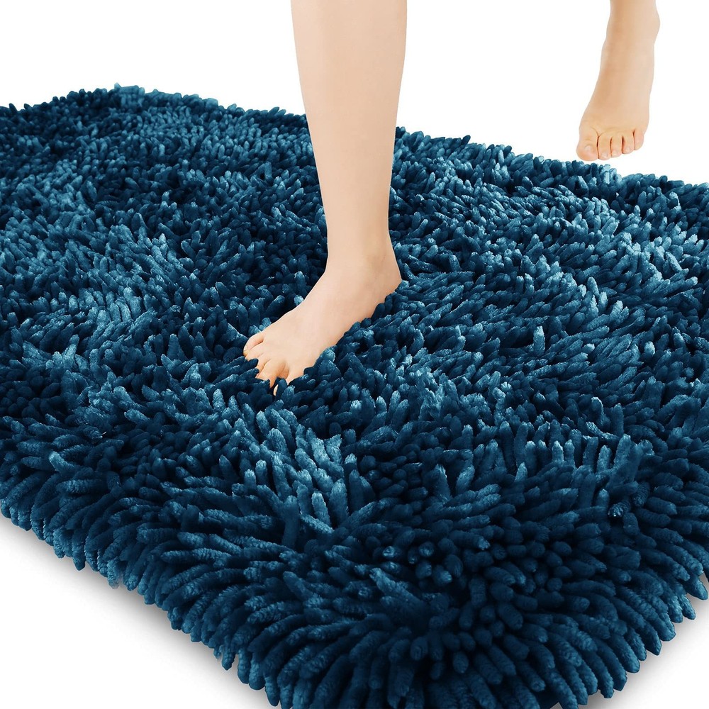 This bath rug is a game-changer! The ultra-soft chenille feels amazing underfoot and absorbs water instantly. I love how the non-slip backing keeps it firmly in place for safety. The rich navy blue adds a stylish touch to my bathroom, and it's so easy to just toss in the washing machine when needed. The plush texture is like walking on clouds after a shower - way better than hard tile floors. It dries quickly and maintains its shape wash after wash. Perfect combination of comfort, functionality and good looks!