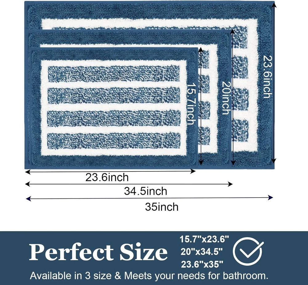 📝 Product Description Features: Made of soft and thick microfiber material for a luxurious and comfortable feel. Non-slip backing design ensures the mat stays securely in place, preventing slips and falls. Highly absorbent material quickly absorbs water, keeping your bathroom floor dry and safe. Machine washable for easy cleaning and long-lasting freshness. Suitable for bathrooms, showers, vanities, or any indoor floor area. Specifications: Material: Microfiber Color: Khaki/Blue Stripe/Gray Size: 31.5" x 20" (80 x 50 cm) Shape: Rectangular Type: Bath Mat/Bathroom Rug Package Includes: 1 × Soft Plush Bath Mat Washing Instructions: Machine washable; please wash separately in cold water. Tumble dry on low heat or air dry. Do not bleach or iron. What's the features about the Insun bathmat mat? Material: high quality microfiber fiber and TPR rubber backing . Extra soft and comfortable designed to absorb water and keep your bathroom floor dry and clean. The bath rug helps to trap moisture deep within the rugs fabric fingers allowing the rug to dry quickly . Non-slip bottom is made of high quality TPR material. This anti-skid backing has slip resistance on the floor surface, that it won't slip or slide to keep you more safe. Widely Use: Suitable for hotel,sauna,shower,gym for bathroom,Bedroom,dining room,living room,or at any place in your home where you want support and warmth on your toes! Machine Way: Machine wash separately in cold water using mild detergent. Use only non-chlorine bleach when needed. Tumble dry on low setting and shake to restore fluff. P ackage included:1 piece bath rug. Soft & Comfortable Soft and comfortable feeling,just like walking on the cloud. Soft pile that soothes tired foot and shields toes from the cold floor. No Shedding Easy to clean, It can be washed by hand or machine. Bath mats are very absorbent and will maintain shape and colors after multiple wash and dry cycles.H Plush & Water Absorbent Extra soft shaggy microfiber fabric helps save your floors from dripping water. Moisture is trapped in the mat's deep pile, allowing the rug to dry quickly and cleanly