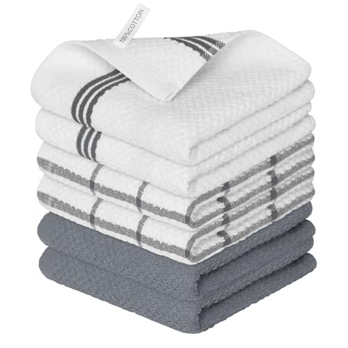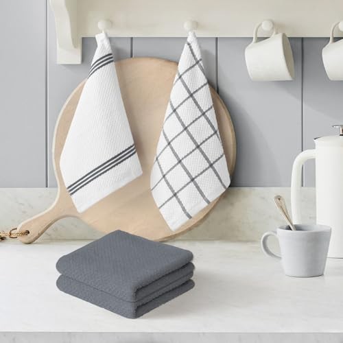 Soft Ring-Spun Cotton Dish Towels, 12x12 Inch, 6-Pack Grey