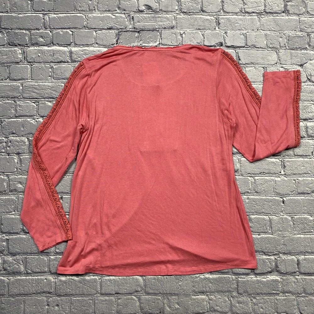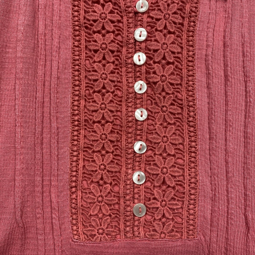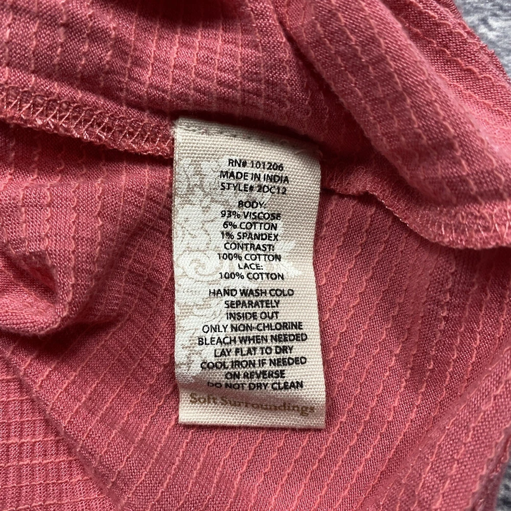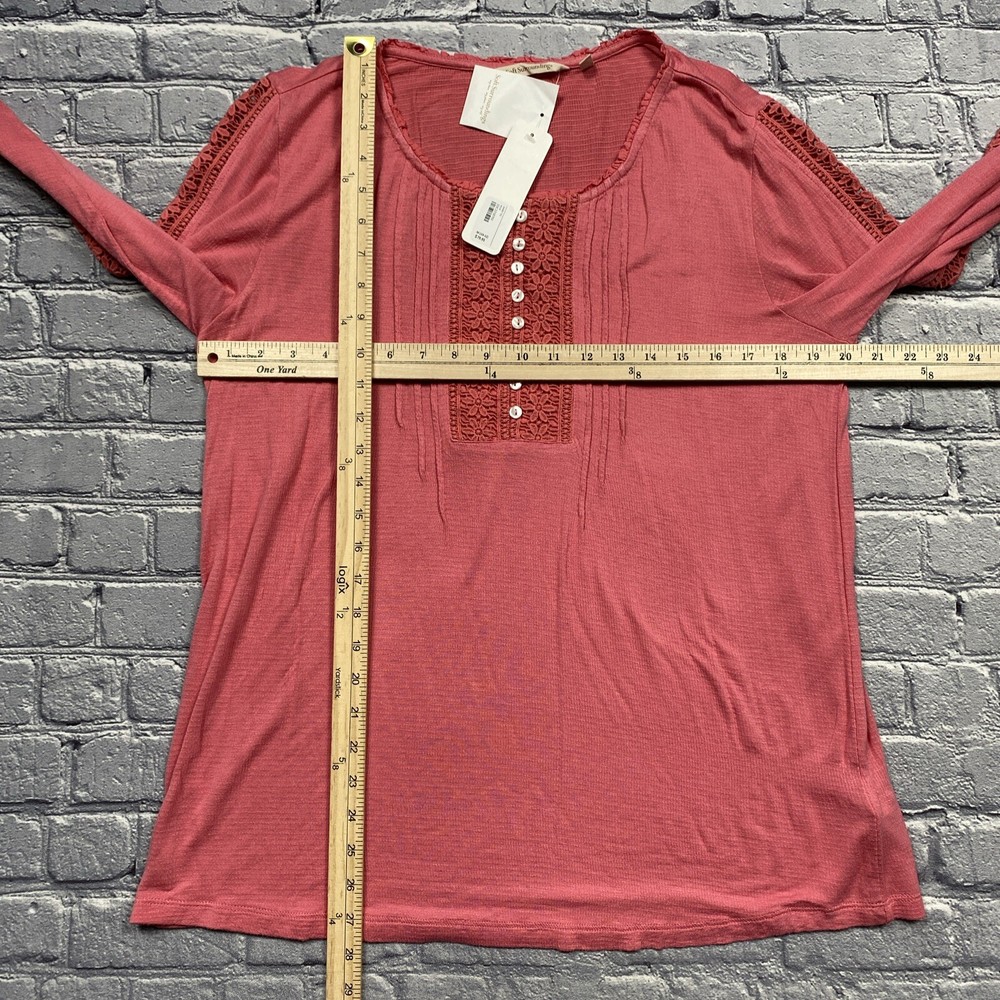 Fit: Classic Size Type: Regular Pattern: Solid Features: n/a Season: Fall, Winter, Spring Material: Cotton Blend Character: Boho Department: Women Brand: Soft Surroundings Size: M Theme: Bohemian, Classic, Peasant, Coquette, Feminine, Hippie, Fairy, Cottagecore, Pinkcore Color: Pink Vintage: No Fabric Type: Knit Neckline: Round Neck Occasion: Casual, Party/Cocktail, Travel Type: Blouse Sleeve Length: Long Sleeve Style: Tunic Accents: Crochet