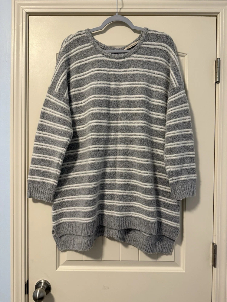 Soft Surroundings Long Sleeve Back Zip Striped Cozy Sweater Tunic Size L