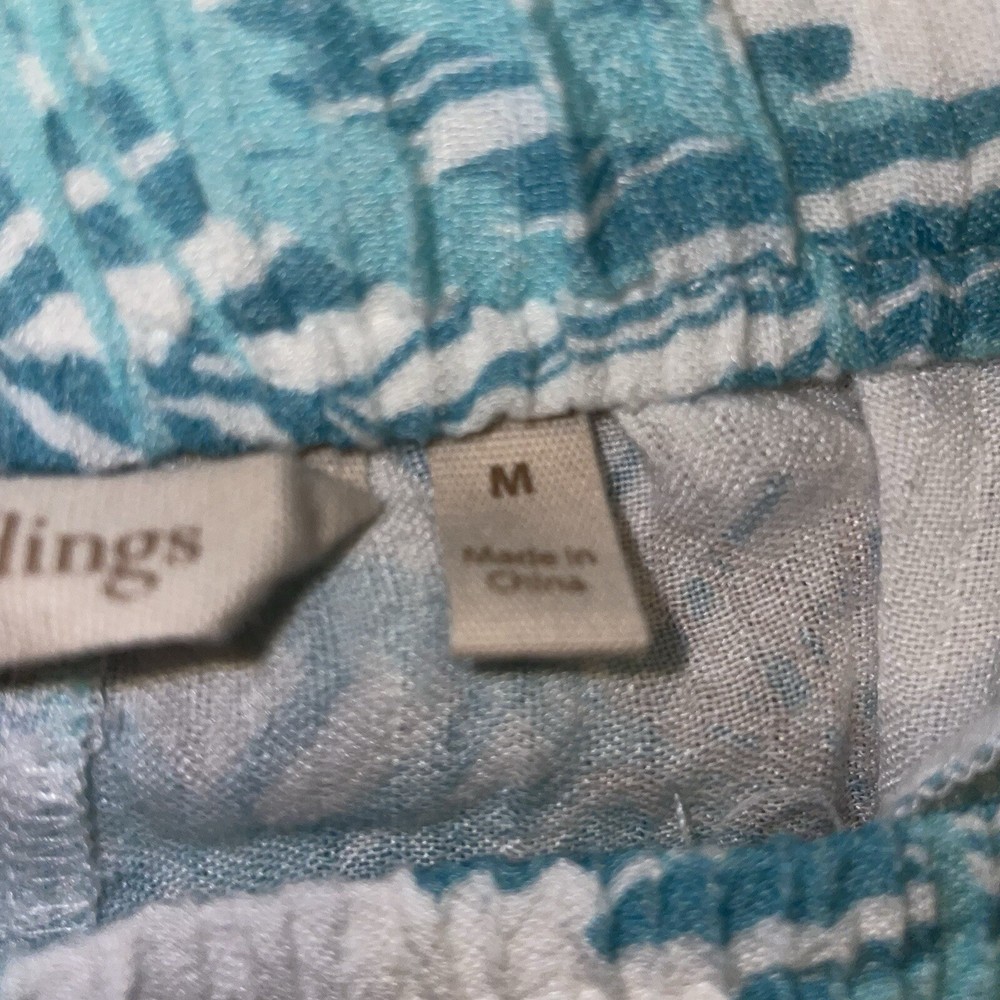Soft Surroundings Medium Blue Palm Tree Linen Wide Leg Pants J1