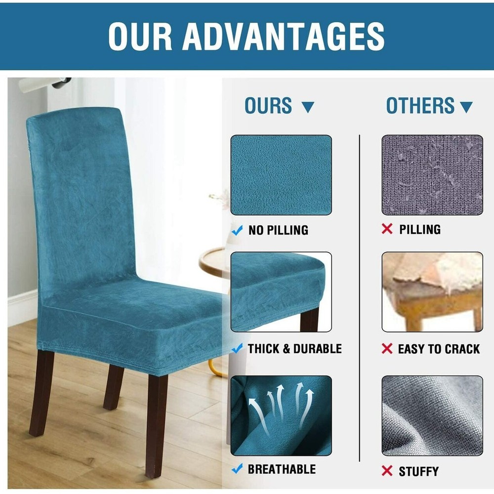 1. These slipcovers instantly elevate any dining chair with their ultra-soft velvet feel and luxurious deep blue color. The stretchy fabric fits snugly while staying wrinkle-free, giving my old chairs an elegant makeover. They're surprisingly durable and make cleanup a breeze—just wipe away crumbs! Perfect for hosting dinner parties when I want my space to look polished. The rich texture adds warmth and sophistication, making every meal feel special. Definitely worth the upgrade for both style and practicality!