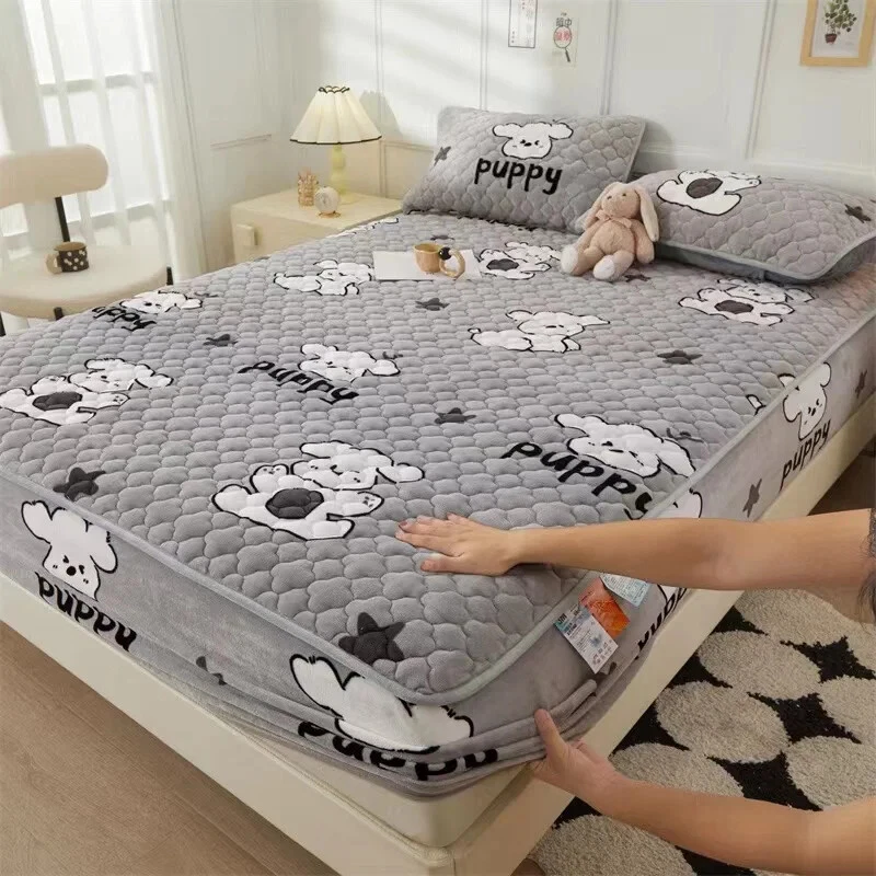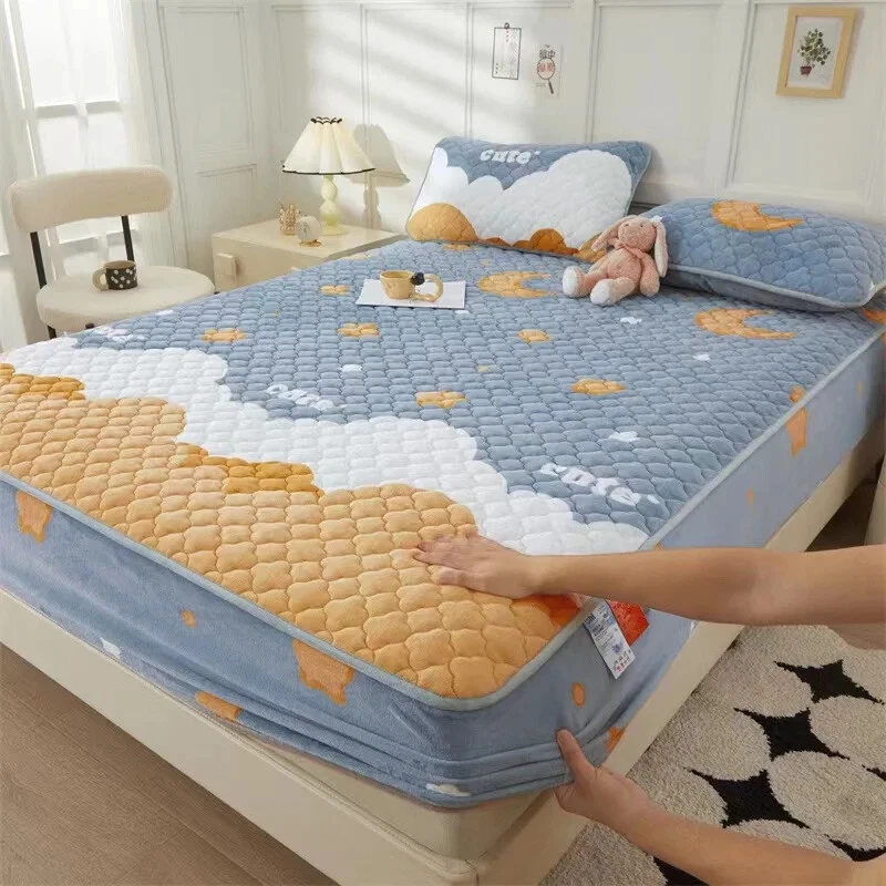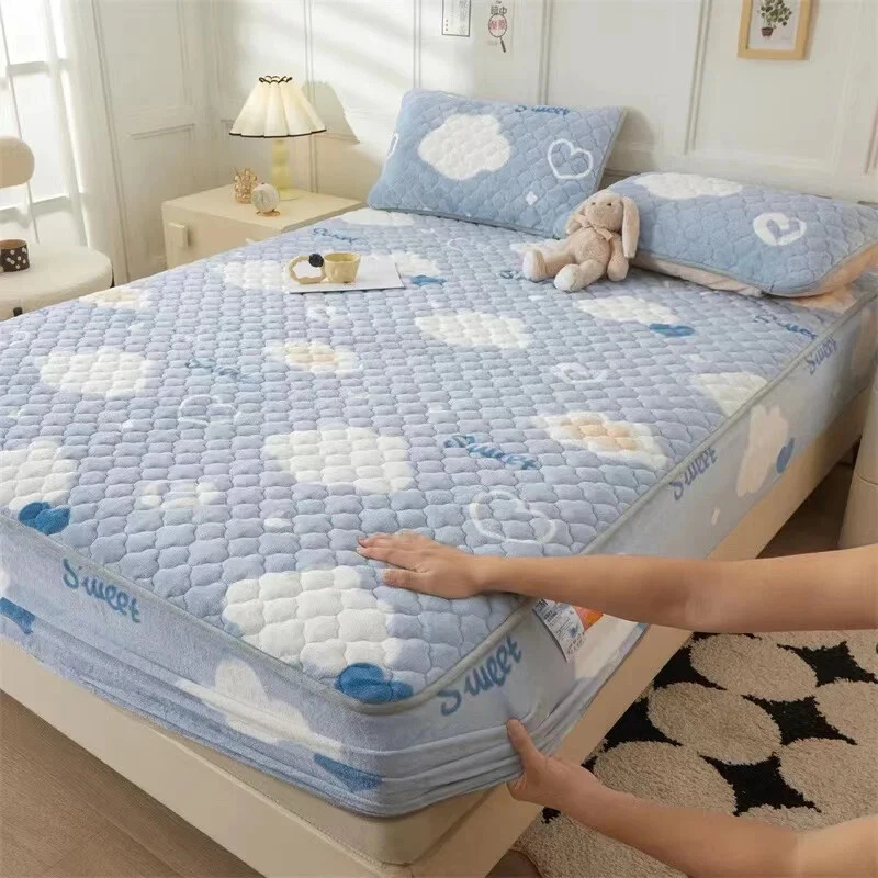 Soft Thick Velvet Quilted Bed Pad Protector Cover Luxury Flannel Mattress Cover