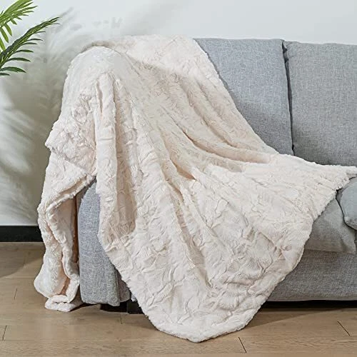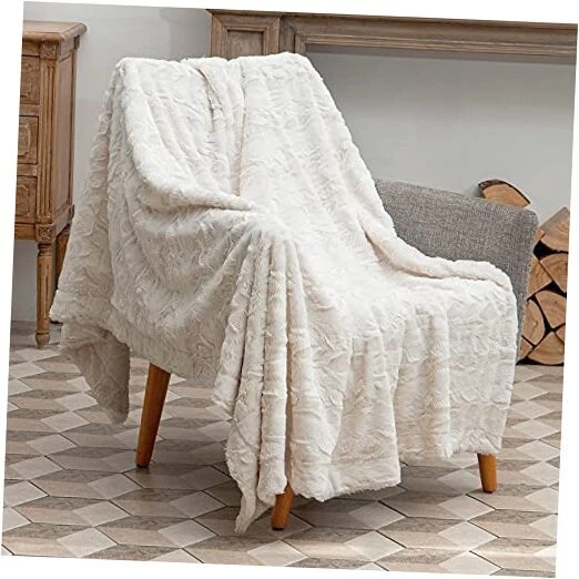 Soft Throw Blanket for Couch, No-Shedding Faux Fur 51" x67" Cream White