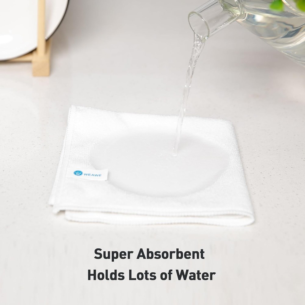 White Microfiber Cleaning Cloth 13"x13", Ultra Soft Absorbent Microfiber Cleaning Rags for Housekeeping Cleaning Supplies, Lint Free Reusable Cleaning Cloths for House Washable, Pack of 12 💕EXCEPTIONAL EFFICIENT CLEANING - WEAWE microfiber cloths are 8X's MORE ABSORBENT than COTTON cloths,lasts 1000+ WASHES,These premium cleaning rags for housekeeping can soak up water or dust from the countertop and tables instantly and leaves your kitchen spotless. They are lightweight, super absorbent and dry quickly,Clean smarter not harder. 💕PERFORMANCE OPTIMIZED - Unique manufacturing process is used to solve the problem of easy fading of textiles. They are better than any other high performance cleaning rags you’ve tried. Lint-free and non-scratch cloth is safe for use on all surfaces. Clean with or without water, from worktops, appliances to kitchens, bathrooms, mirrors etc, they will make your house sparkling. 💕EXCELLENT QUALITY - No harmful dyes or chemicals. Our microfiber cloth is made of 85% Polyester+15% Polyamide ensuring textiles meet high safety and environmental standards. Perfect for dusting, scrubbing, polish and drying your entire home, office and car with less effort! We are determined to provide you with high-quality cleaning cloth. 💕MULTI-PURPOSE & EASY CARE - Suitable for various cleaning scenarios. Not just a microfiber towel but serves great as fast drying dish cloths for your kitchen, Thoroughly removes grease, grime and dirt from your pots, pans, plates. In addition, our rags are very easy to cleaning all types of delicate electronic gadgets,iPads and computer screens!our rags are very easy to care:Just keep dry after cleaning.
