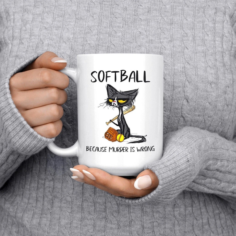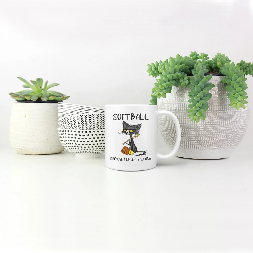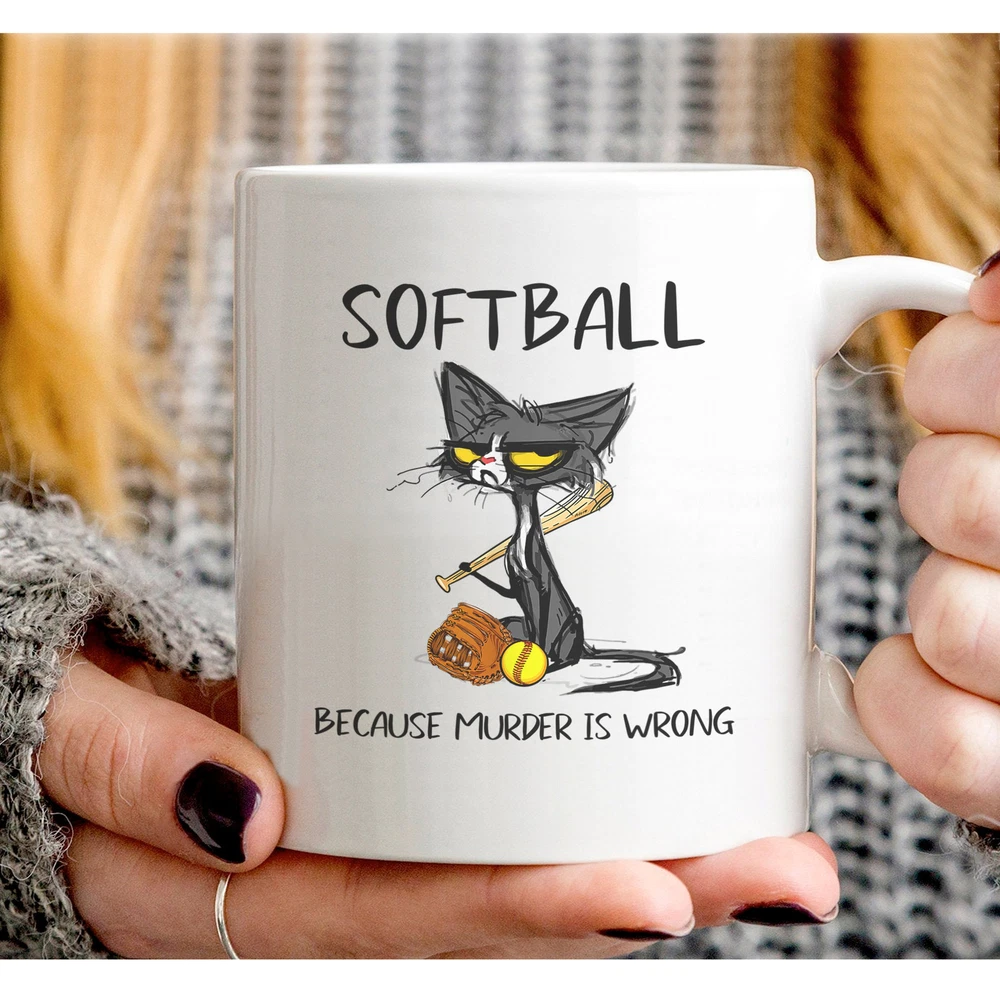 Softball Because Murder Is Wrong Funny Cute Cat Idea Gift Mug Coffee Mug Tea Cup Product Details.. This high quality 11oz. ceramic white mug has a premium hard coat that provides crisp and vibrant color reproduction sure to last for years. Perfect for all hot & cold beverages. The highest quality printing possible is used. It will never fade no matter how many times you wash it. Material: 100% Ceramic. Print both sides. Dishwasher and Microwave Safe. High Gloss + Premium White Finish. Printed in the U.S.A. Personalized & Custom. We support personalized and custom mug to add custom, when placing an order, you can add notes to the "order note" in shipping address section. Also you can contact us directly via message. Shipping Info. Ready to ship in 1 to 2 business days, All products are made-to-order and proudly printed in the United States. Shipped by USPS and DHL, You will receive your order in 5-7 days. Replace & Refund. All products are defective during shipping broken, chipped will be replaced free of charge. You are not satisfied with the product, we will refund 100% money to you. If any other issues arise, please do not hesitate to message, we would be more than happy to assist you.