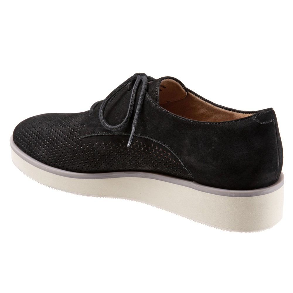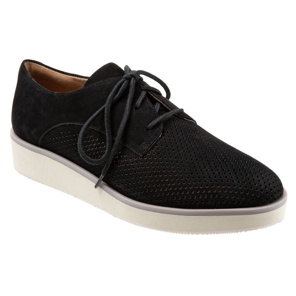 Trotters Ruby Perf T2320-036 Womens Black Narrow Nubuck Loafer Flats Shoes