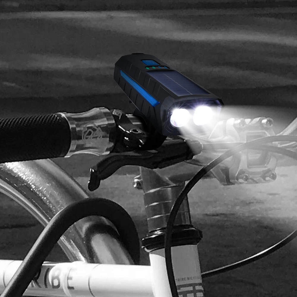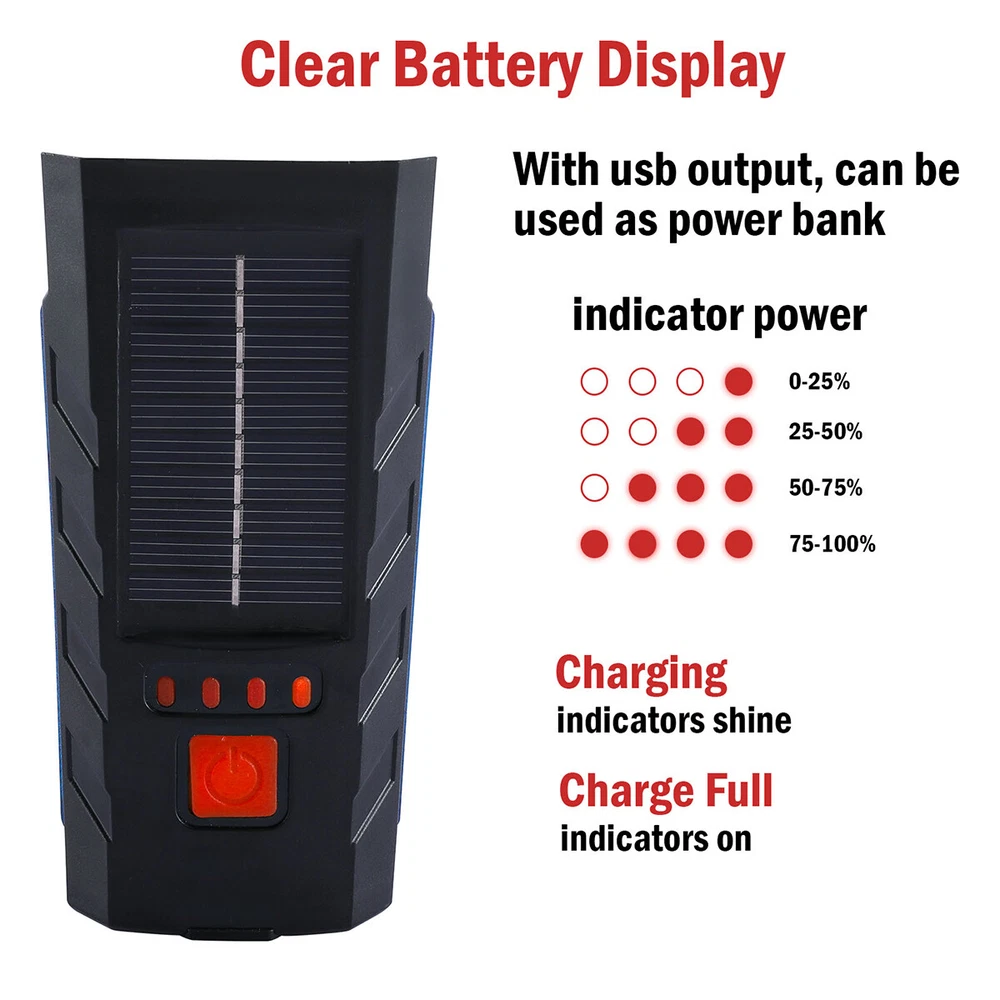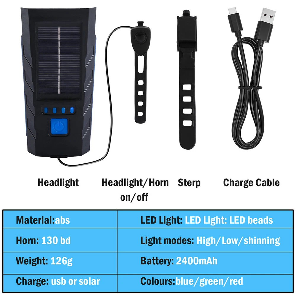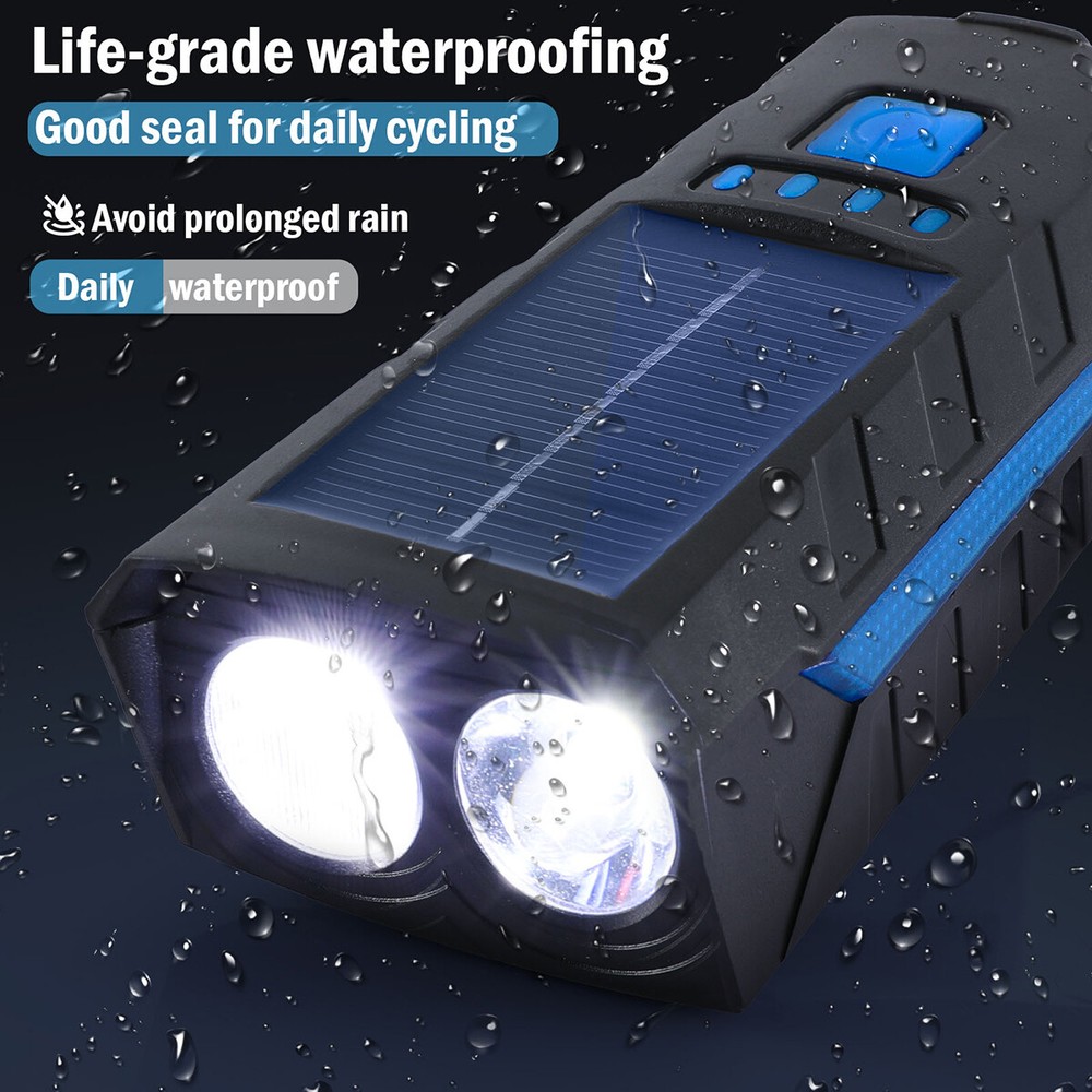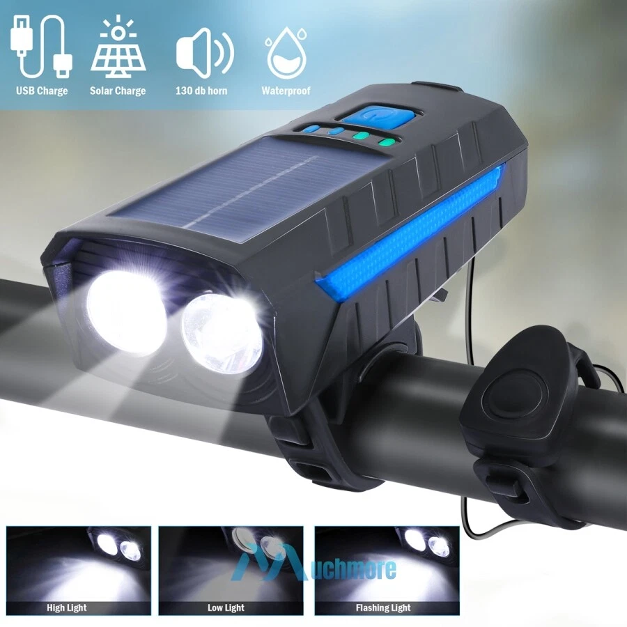 Solar Bike Light with Horn, USB Charging, 3 Modes for Night Riding