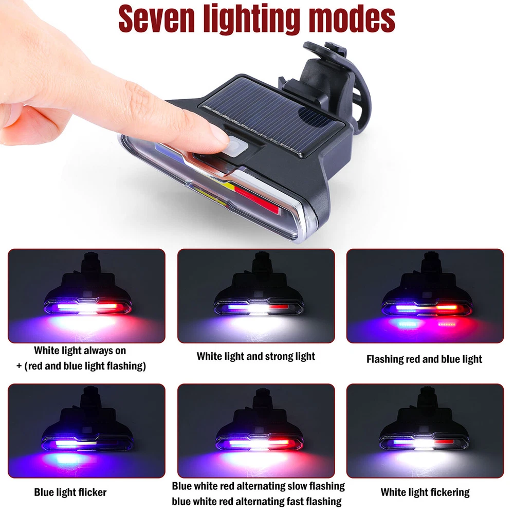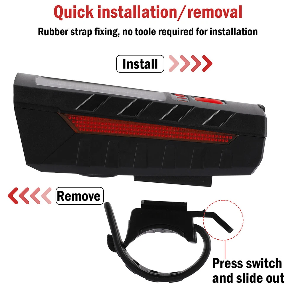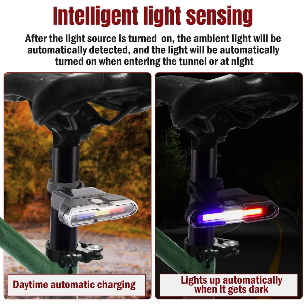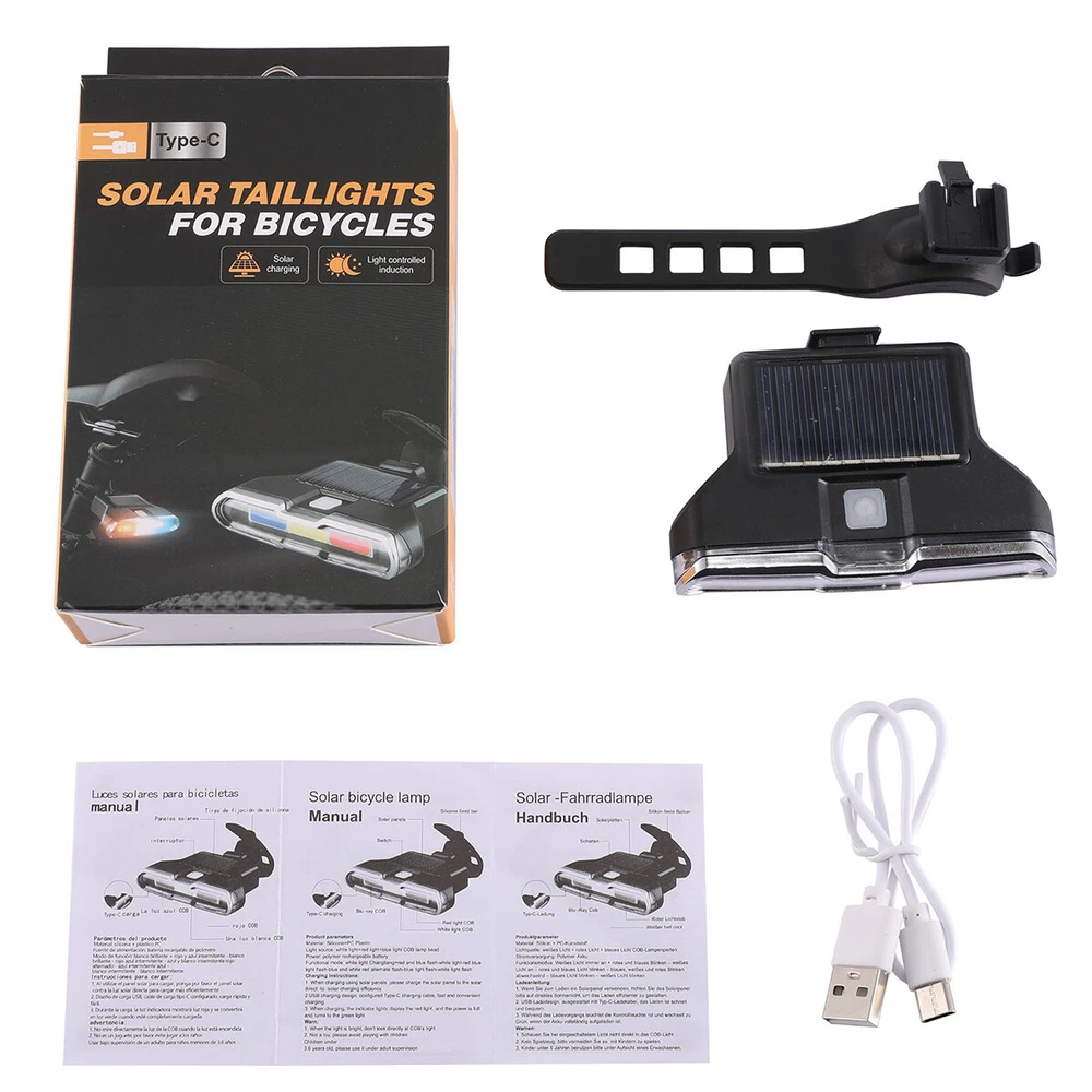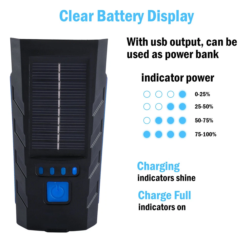 Solar Bike Light with Horn, USB Charging, 3 Modes for Night Riding