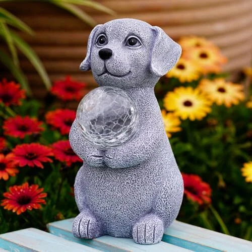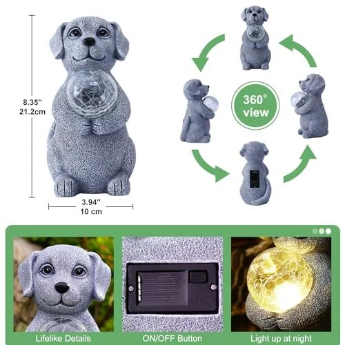 30 Days Return Policy Fast Delivery Trusted seller Solar Dog Garden Statues - 8.4 "Dog Decor with Gazing Ball Solar LED Lights, Unique Gifts for Mom Grandma Birthdays & Dog Lovers, Outdoor Decor for Outside Lawn Porch Patio (Gray) Product Description 】Exceptional Customer service】: Your satisfaction is our top priority. Should you encounter any issues with this product, feel free to reach out to our dedicated customer service team for prompt and satisfactory resolutions. Shop without worries 【Thoughtful Gift】: Being an embodiment of love for dogs, it makes for a heartfelt present for dog lovers, moms, and grandmas, adding a personal touch to your gift-giving. 【Embedded Solar LED】: This statue doubles as a lantern with its integrated solar-powered LED light. As dusk falls, it begins to glow, adding a mesmerizing illumination to your outdoor space. 【Perfect Size】: Standing at 8.4 inches, this piece is the perfect size to be noticeable without overpowering. It's a remarkable addition that's sure to draw the eye and bring joy to any passerby. 【Charming Aesthetic】: The " Solar Dog Garden Decor Statues" blends a playful canine shape with a captivating gazing ball, creating a unique piece that adds a whimsical touch to any garden setting. 【Versatile Usage】: Whether as a centerpiece in your garden, a heartening presence on your balcony, or a delightful surprise for a dog lover, this statue is as versatile as it is charming. Shipping Returns Payment Shipping Shipping is FREE to all addresses other than APO/PO boxes in the lower 48 states. All our stock ships from US-based warehouses. Shipped via USPS or UPS (depending on location and package weight) Unless stated otherwise, all orders will ship within 24-72 hours of your payment being processed. Check our feedback to see the great reviews of FAST shipping we offer. Returns As our valued customer, we will do our best to make sure the product you receive arrives to you on time and as expected. If you are not satisfied with your purchase, please contact us within 30 days of receiving your order to process a return. Payment We currently accept payment via eBay managed payments only. Once payment is cleared, we will dispatch your shipment within 1-3 business days. Please refer to the "Shipping" tab for more information regarding shipping speed to your destination.