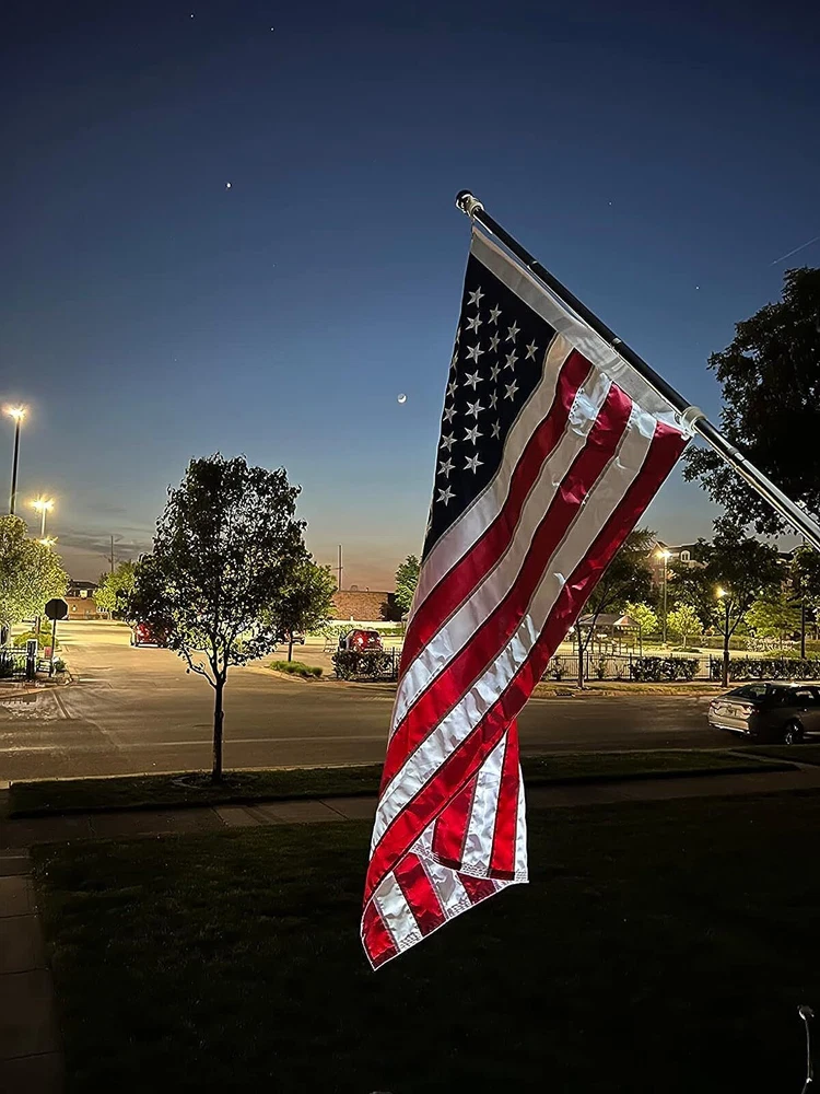 360° Adjust the light angle to illuminate the perfect spot. It can light about 2 to 3 meters ( about 6-10FT). Put solar panel face towards the sunlight directly, charged by sunlight during daytime. With the advanced sensor design, just turn on the light through the "ON / OFF" button before installation. The weatherproof light automatically turns on at dusk and off at dawn, for hassle-free performance Easy essemble, fit for all 1-1.5’’ Spinning Flag pole. Flagpole mounting employs brackets to install a solar light directly to the pole. This allows the light to point up toward the flag. To install, place the brackets on either side of the flagpole and fasten them together to form a tight grip on the flagpole Solar light is perfect for lighting your flag or brightening up the exterior of your home. The light is composed of 4x0.5W bright LEDs, boasts a bright light output of 240 lumens, ensuring that the flag and the flagpole are clearly illuminated. When the light is fully charged, it can operate continuously for up to 12 hours To show your patriotism 24/7. The flagpole light will gather energy from the sun all day to help ensure that your flag is lit through fog, gloom, and the darkest hours of the night. There are no batteries to change and no risk of losing the light should the power go out. The solar flagpole light is made of durable material capable of withstanding heavy storms without damage 1 year after-sale technical support and 100% ensures this will quickly become your favorite no-risk purchase. Simply us if you have any problems when use !