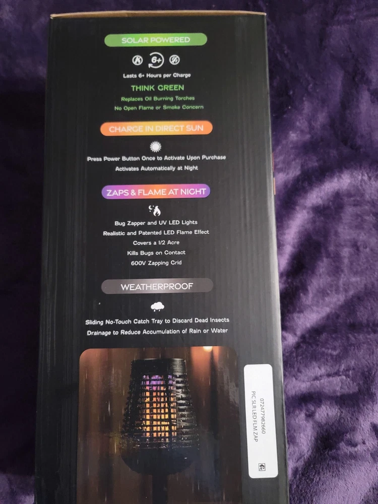 Solar Insect Killer Torch with LED Flame Effect, Black Torch