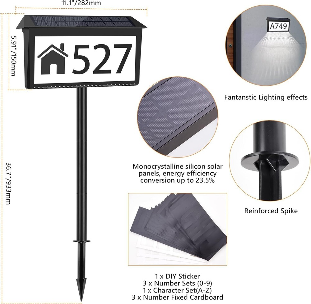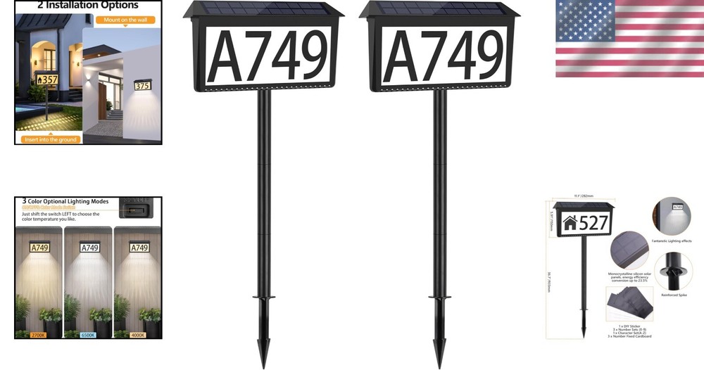 Solar Powered Address Sign 2 Pack - Waterproof LED House Numbers with Stakes ‹ › ‹ › ‹ › ‹ › ‹ › ‹ › ‹ › ‹ › ‹ › Solar Powered Address Sign 2 Pack -Waterproof LED House Numbers with Stakes Features: 3 Color Lighting Modes: Choose from 2700K Warm Light, 4000K Daylight White, or 6500K Cold White. Unique Light Effects: Hollowed-out design allows bright light to create stunning patterns on walls or ground. Two Installation Methods: Hang it on the wall or insert it into the ground using provided poles. Robust Weather Resistance: High-quality ABS & PS material with IP65 Waterproof rating ensures durability in all weather conditions. Efficient Solar Panel: High-quality monocrystalline silicon solar panels with up to 23.5% energy conversion. Customizable Stickers: Includes 3 sets of 0-9 numbers and 1 set of A-Z letters for a personalized touch. Benefits: Elegant addition to your entrance, enhancing curb appeal. Clear visibility for visitors, emergency vehicles, and delivery services. Powers itself with solar energy, saving you money on electricity bills. Long-lasting battery provides approximately 20 hours of continuous illumination. Easy installation allows you to set it up in mere minutes. Modern design that complements any architectural style, adding charm to your home. Why Choose Our Solar Powered Address Sign? Elevate the elegance of your home with our Solar Powered Address Sign. Designed not only for functionality but also to enhance the aesthetic appeal of your entrance, these customizable address numbers are perfect for any outdoor setting. The three color lighting modes and unique hollow design create captivating lighting effects that ensure easy identification even in the dark. Choose to install it on the wall or stake it into the ground—flexibility has never felt so luxurious. This product stands strong against the elements, thanks to its weather-resistant construction. With efficient solar technology and long-lasting illumination, you'll never have to worry about visibility again, saving both time and hassle. Customize it to reflect your personality and preferences, allowing your home to not only stand out but shine. Order your Solar Powered Address Sign 2 Pack today and add a touch of charm and sophistication to your home! Shipping Free & Fast Shipping - We offer free shipping to most of the USA with a normal delivery time of 3-7 days. However, due to the current situation, additional delivery time (up to 3 weeks) may be required for some items. Alternative Carriers - We may use alternative carriers (e.g. USPS, FedEx, UPS, etc.) to ensure your package arrives safely and on time. Due to the use of multiple carriers, we are unable to provide a tracking number automatically. Handling Time - Orders are processed and shipped within 1-2 business days of receiving cleared payment. Shipping Restrictions - Shipping to Alaska, Hawaii, Puerto Rico, Guam, and other US territories may incur shipping charges or delivery restrictions. Please contact us before ordering, or your order can be refunded/cancelled. State Restrictions - There may be restrictions based on your state of purchase. For example, certain items may not be shipped to California due to state regulations. Contact for Tracking Updates - If you require tracking updates or have any concerns about the delivery of your order, please feel free to contact us, and we will be happy to assist you. Return Please see our eBay Return Policy. Thank you. Payment We accept all major credit cards, PayPal, and Apple Pay for your convenience. Your payment information is secure and encrypted to ensure a safe and seamless transaction. Please complete your payment within 3 days of purchase to avoid any delays in shipping. Feedback Your feedback is extremely important to us. We strive to provide the best products and customer service possible. If you are satisfied with your purchase, please take a moment to leave us a positive review. If you have any concerns or issues with your order, please contact us before leaving negative feedback. We are committed to resolving any problems and ensuring your satisfaction. Contact Us If you have any questions or concerns, please feel free to reach out to our customer support team. You can contact us through the eBay messaging system. We are available Monday to Friday, 9:00 am to 5:00 pm EST, and we will do our best to respond to your inquiry within 24 hours. Thank you for supporting our small family business! UPC: Not Set Unit Quantity: 3.03 Material: Plastic,PS Theme: Not Set Room: Outside,Garden,Yard,Driveway Features: Illuminated,Solar Powered,Waterproof Mounting: Free Standing,Wall Mounted,Pole Mounted Department: Adults Character: Not Set Care Instructions: Easy Care Type: Address Plaque Brand: Unbranded Style: Modern Subject: House Numbers Shape: Rectangle Pattern: Not Set Finish: Smooth Color: Black Size: 2 pack MPN: Not Set Character Family: Not Set Country/Region of Manufacture: Not Set Orientation: Horizontal Item Height: Not Set Item Width: Not Set Item Length: Not Set Battery Type: None Model: Not Set Item Weight: 3.03 lb Unit Type: lb Personalize: Not Set Vintage: Not Set Handmade: Not Set Additional Parts Required: Not Set Engraved: Not Set Customized: Not Set