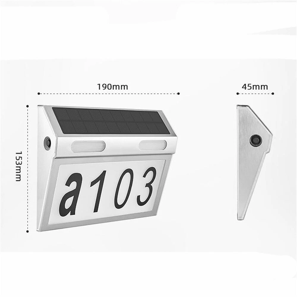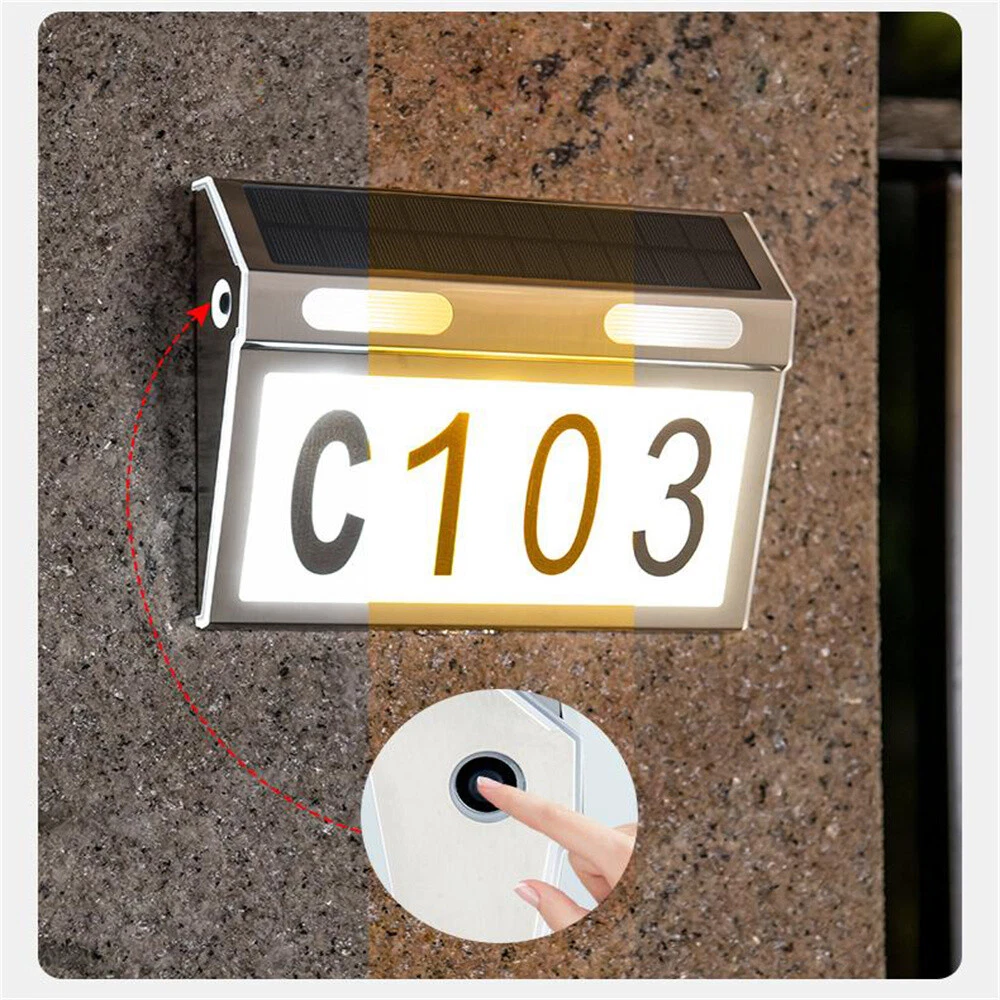 SAFE & SECURE SHOPPING 100% SATISFACTION GUARANTEED FAST SHIPPING Solar Led Light Sign House Street Door Address Plate Light IP65 Product Description If you have any questions, please contact customer service first, do not open disputes easily, thank you! Features : -100% brand new, waterproof, rechargeable -Solar powered, economical and energy saving -No wiring installation,easy and fast -Durable, waterproof, frost-proof,sun-proof -Automatic induction start at dusk -Simple switch design,small and exquisite,easy to use,no slippage -hook recess,easy to hang,with fixed effect -Automatic light on at night,automatic charging during the day -DIY your door sign Specifications : Solar panel:5V 1.5W PET monocrystalline returned to had pressure plate Battery:3.7V 1800mAh 18650# lithium battery Material:stainless steel PC Color temperature:white light 6500k/warm light 3220k/neutral light 4500k Waterproof level:IP65 Color:stainless steel Switch:long press three seconds to turn on the light,light press to switch mode Function:First gear,white light;second gear,warm light;third gear,neutral light. Charging time:6-8 hours Working time:8-10 hours Package included: 1*LED solar door number light 1*Number sticker 1*Sticker alignment cardboard 1*Punched alignment cardboard 1*3M adhesive sticker 1*Accessories About Us About Us We accept all payments authorized by eBay. Copyright © 2022 Tongtool
