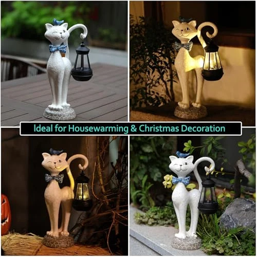 30 Days Return Policy Fast Delivery Trusted seller Solar Outdoor Garden Statues Light,Cat Figurines with Cute Birds Garden Sculpture Decor, Unique Christmas Gifts for Women, Men or Daughter, Housewarming gifts and Yard Decoration Product Description Charming Garden Companion - This adorable white cat statue comes to life at night with a glowing lantern, powered by solar energy. Perfect for bringing warmth and charm to any space, indoors or out. Perfect for cat lovers, garden and anyone looking to add a unique accent! Automatic On/Off Functionality - Let the sun do the work! Our cat decor lights are powered by solar energy and will be automatically charged during the day. The outdoor lights automatically turn on at dusk and off at dawn, providing seamless lighting without any manual intervention. Lighting Up More Time Solar Ourdoor Lights - With their IP65 waterproof rating, these solar garden lights are built to withstand various weather conditions, ensuring long-lasting performance even during rainy or snowy days. The outdoor solar lights can light up for 8-10 hours during all night after a 6-8 hours solar charged in day even if it is a cloudy or rainy day. Versatile Applications - The lights are a good choice for you to decorate Christmas, illuminate the roads of your home, create a strong festive atmosp, and welcome your neighbors and guests to join your Christmas party! Our solar lights are perfect for enhancing your home, house, yard, garden, patio, front porch, backyard, walkway, landscape, lawn ect. Perfect Gift for All Occasions – With its playful design and enchanting light, this cat statue makes a thoughtful gift for birthdays, Housewarmings, Wedding, Mothers Day, Fathers Day, Valentines Day and Christmas any special occasion. It can bring a fantastic experience for Mom;Grandma;Wife;Daughter;Sister;Aunt;girlfriend. Shipping Returns Payment Shipping Shipping is FREE to all addresses other than APO/PO boxes in the lower 48 states. All our stock ships from US-based warehouses. Shipped via USPS or UPS (depending on location and package weight) Unless stated otherwise, all orders will ship within 24-72 hours of your payment being processed. Check our feedback to see the great reviews of FAST shipping we offer. Returns As our valued customer, we will do our best to make sure the product you receive arrives to you on time and as expected. If you are not satisfied with your purchase, please contact us within 30 days of receiving your order to process a return. Payment We currently accept payment via eBay managed payments only. Once payment is cleared, we will dispatch your shipment within 1-3 business days. Please refer to the "Shipping" tab for more information regarding shipping speed to your destination.