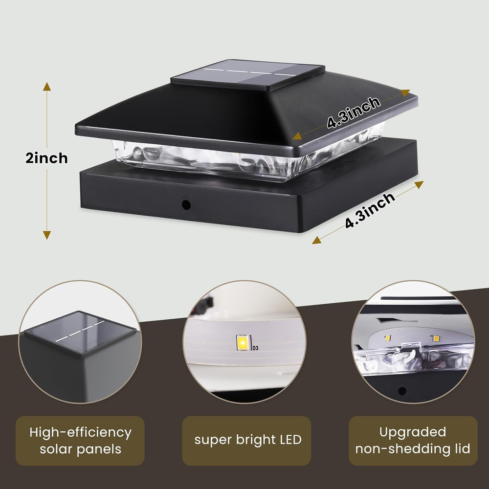 Solar Post Cap Lights Outdoor 8Pack, Black Waterproof Solar Powered Deck Fence P