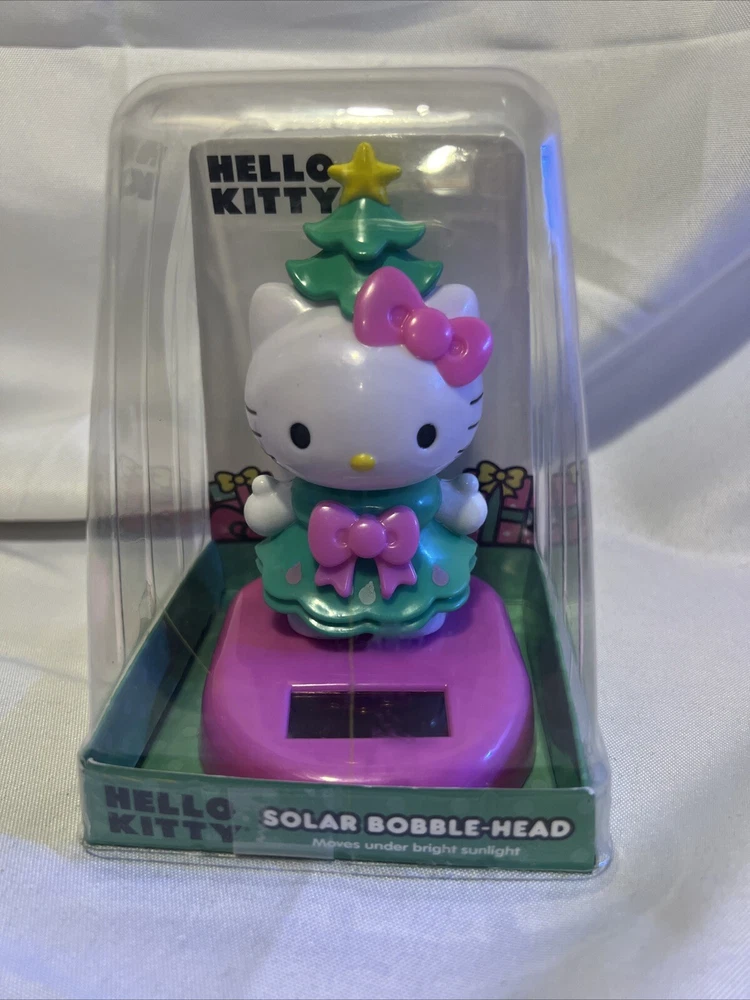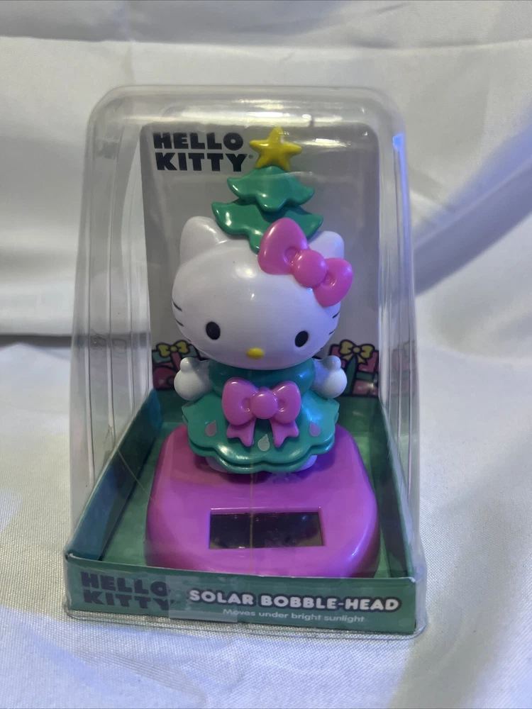 Solar Powered Dancing Bobble Head Toy HELLO KITTY Kawaii Christmas, Open Box