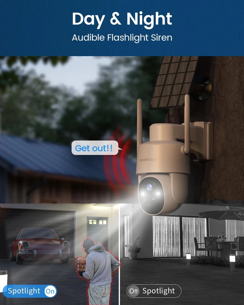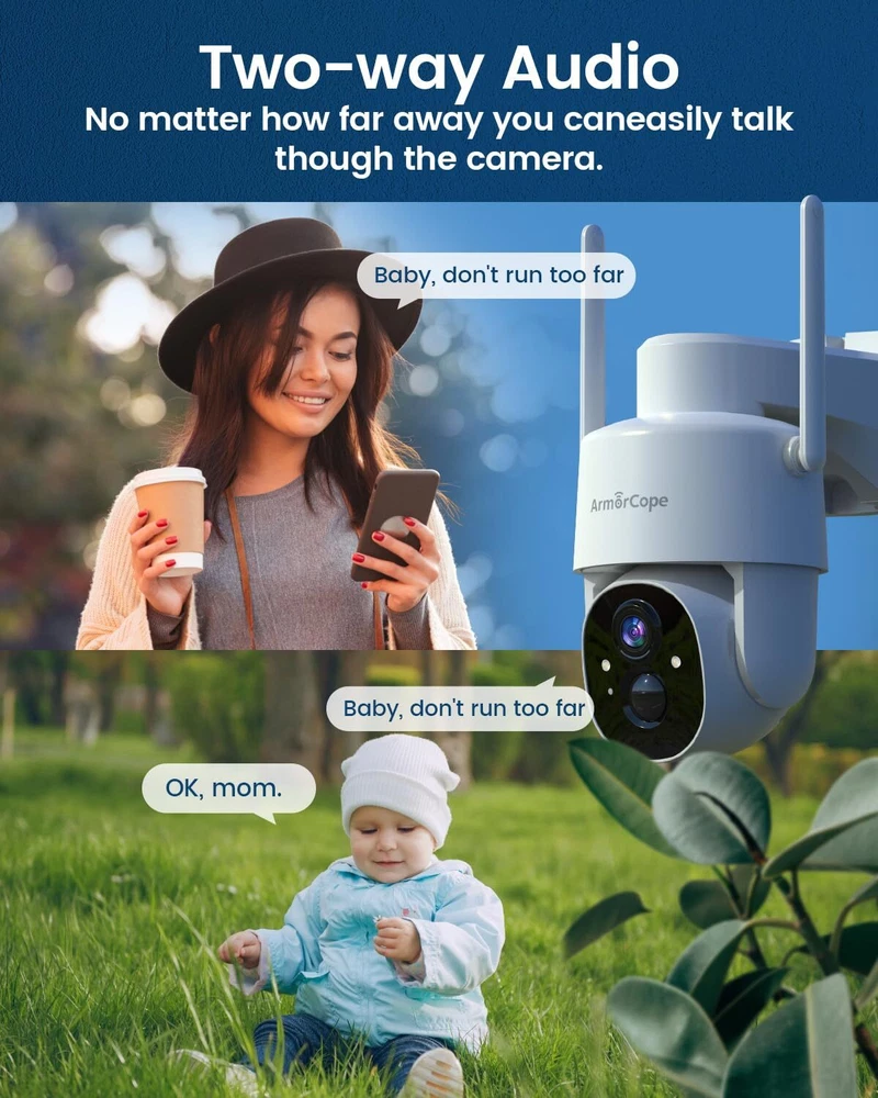 【Solar Powered & 100% Wireless Easy Installation】Work with Vicohome App.The solar powered outdoor camera eliminates the need for wires and cables, making it easy to install and use. This wireless rechargeable battery camera can operate continuously as long as there is sunlight to provide the necessary electric power. 【360° PTZ View & IP65 Waterproof 】This PTZ outdoor security camera has a 355° horizontal and 100° vertical rotation range, allowing it to capture wider areas and record crystal-clear videos. IP65 waterproof rating and ability to operate in temperatures ranging from -4°F to 131°F, make it ideal for use in various weather conditions, ensuring the safety of your home at all times. 【2K High-Definition with Color Night Vision】wireless security camera with 2K Full HD resolution for superior day and night vision. Advanced color night vision technology allows you to enjoy vivid and accurate colors even in low-light conditions. 【PIR Motion Detection & 2-Way Audio】Surveillance camera adopted PIR sensors with flexible motion sensitivity to avoid false alarms caused by insects. You will receive a notification on your phone once any movement of human is detected. Built-in microphones and speakers allow you to communicate with people in front of the camera no matter where you are. 【Easy Setup & SD/Cloud Storage】With reliable and stable 2.4Ghz WiFi connection (5G is not supported), you can effortlessly enjoy uninterrupted video streaming and remote access to your camera from anywhere at any time.You can choose to store event recordings on an SD card (up to 128G, SD card not included) or in cloud storage (Free cloud for 3 days videos),always safe and easily accessible.