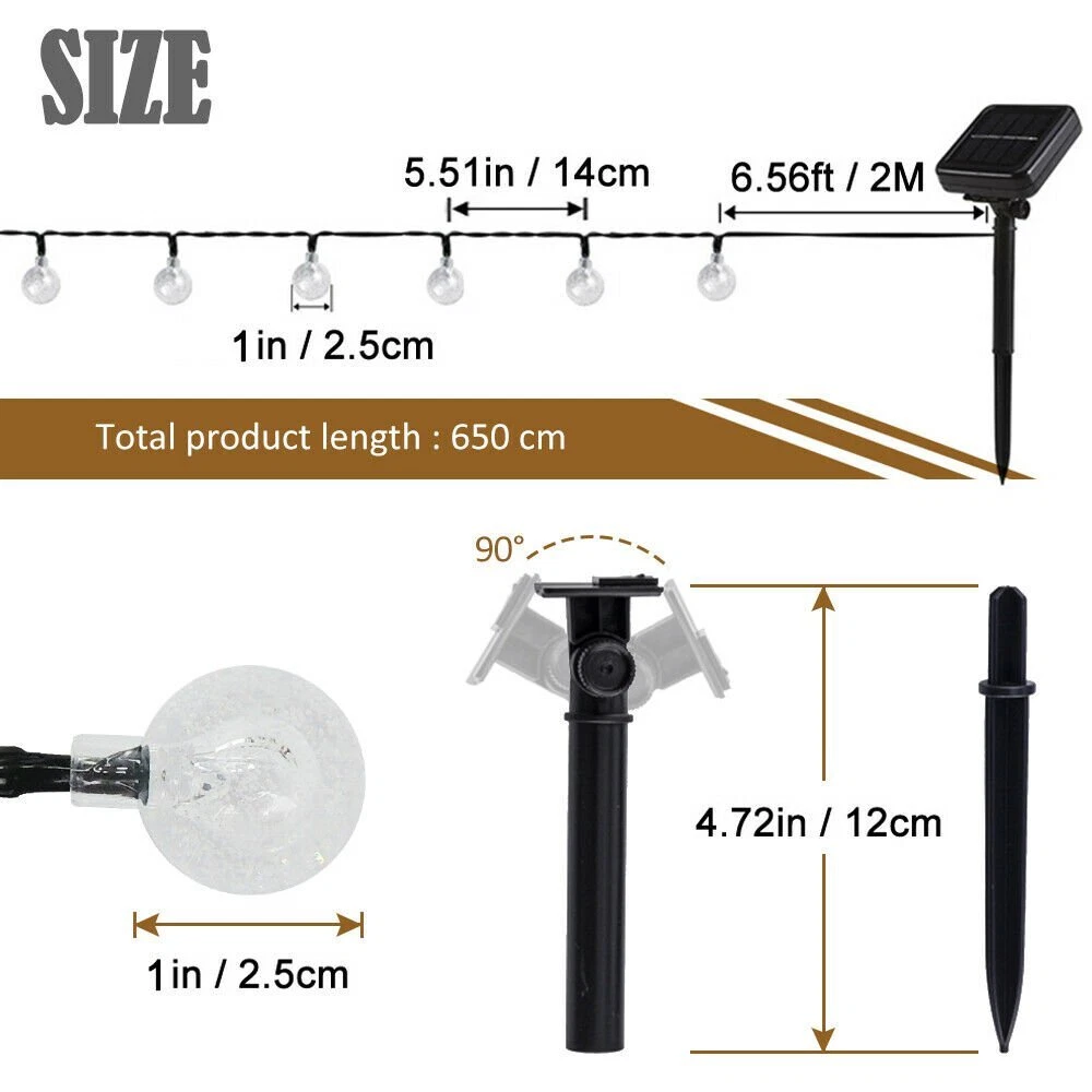 Meinuousa Your Best Online Business Partner Solar String Fairy Lights Crystal Ball Garden Patio Lawn Yard Lamp Warm White Advantage: 【 Solar Powered & Absolutely Safe 】 Built-in rechargeable 1.2v 600mAh NI-MH battery is powered by solar energy, no pollution, no radiation, just bright enough to not annoy your eyes. After longer working, the lights wont too hot, it is security for your family. 【 Durable & Longer Working Time 】 It is cost-saving and eco friendly. The waterproof led lights of strong glass and hard material are erosion-resistant. 【 Weatherproof 】 Waterproof IP65 rating, optimal decorating solution for indoor and outdoor, say goodbye to rainy day, also can withstand any server weather. 【 Easy to install 】 Auto ON at dusk auto OFF in the daytime 【 Energy Efficient & Eco-Friendly 】 Solid raindrops are neat and pretty, apply for Garden, Fence, Landscape, Pergola, Valentine's Day, and other Festive Decoration. Solar powered lights, save more electric fee for you. Specification: Charging Time: 5~8 hours Switch: ON/OFF & MODE Total Length:6.5m/25.5Ft Ball Diameter:2.5cm Features: *Larger solar panel: 1.5 times as large as others. *Lighting up to 10ours after fully charged *Intelligent Lighting Sensor. Auto on at night / Auto off at sunrise * 2 Installation options: Stick into ground & Mount on the wall * 8 Working Modes, Steady on/Chasing/ Slow fade/Twinkle etc. * 2 lighting Modes: Twinkle/Flash, Steady on. Package included: 1 x 30 LEDs Globe Solar String Lights 1 x Ground Stake 1 x Solar Panel 1 x User Manual Payment Shipping Returns Contact Us About US - We accept the payment through :Credit, debit, and gift cards, Apple Pay, Google Pay, PayPal, and PayPal Credit. - Payment must be fulfilled within 4 days after the end of auction. - Please make sure your ebay address is correct. Or not, please correct it before payment. - If you are a big customer, Please contact with us about the item's PRICE and SHIPPING. - Your feedback & suggestion is deeply appreciated, thanks. 1. Please make sure your address in ebay is correct. 2. We will only follow your address listed in the ebay orders for the shipment. 1. We can exchange the item within 30 days after you received it if it is defective. 2. Returned item must have all original packaging and accessories. 3. Buyer are responsible for the returning shipping costs. 1. We greatly appreciate your POSITIVE feedback. 2. Negative or Neutral feedback does not resolve any underlying issues that you may be experiencing as a buyer. 3. Any question or unsatisfaction please contact us with ebay message, we will sincerely solve for you. Feedback is very important to us, if you are satisfied with us, please leave us 5 star positive feedback to us. If you h have any problem, please contact us first BEFORE you give us neutral or negative feedback, so we can try our best to help you solve your problem. All rights reserved.